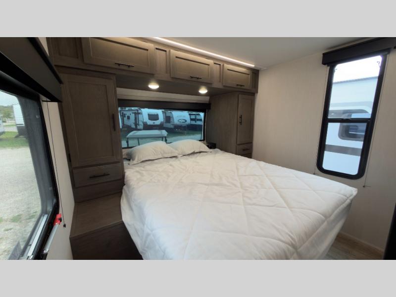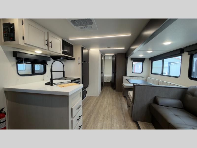 Common Comparisons: Outpaces Jayco Jay Flight 34RSBS and Keystone Cougar 318MB in sleeping privacy and outdoor kitchen utility while staying in a similar weight class.