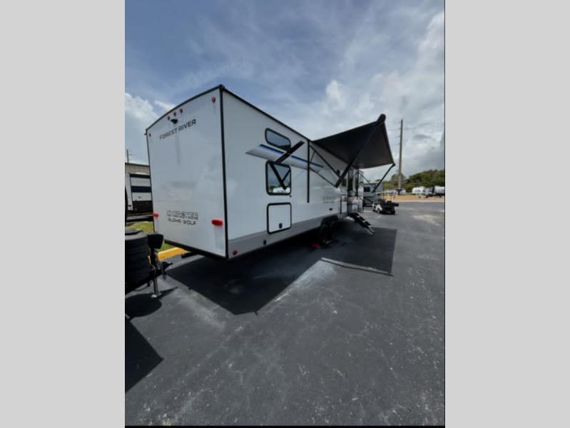 With any Cherokee Alpha Wolf travel trailer by Forest River you'll enjoy outstanding amenities, quality construction, and an affordable price. Each model features a "ToughBend" rigid skirt metal design, 5/8" tongue and groove plywood floor decking, and a "SuperTruss" roof structure that will hold up through years of camping memories. There is a pet friendly "clean sweep" floor design with no heat vents indoors, along with a super lumen lighting system, a 15,000 BTU quick cool central air conditioning, and many more comforts. There are many convenient exterior features such as, Leash Latch pet safety technology, an outside shower with hot and cold water, On The Go rear ladder prep, and exterior steps with oversized landing and quick release. The Weather Guard Package will add protection against the elements with an armored underbelly tank enclosure and forced air heat, thermo-control reflective safety glass windows, and upgraded laminated walls with block foam insulation!