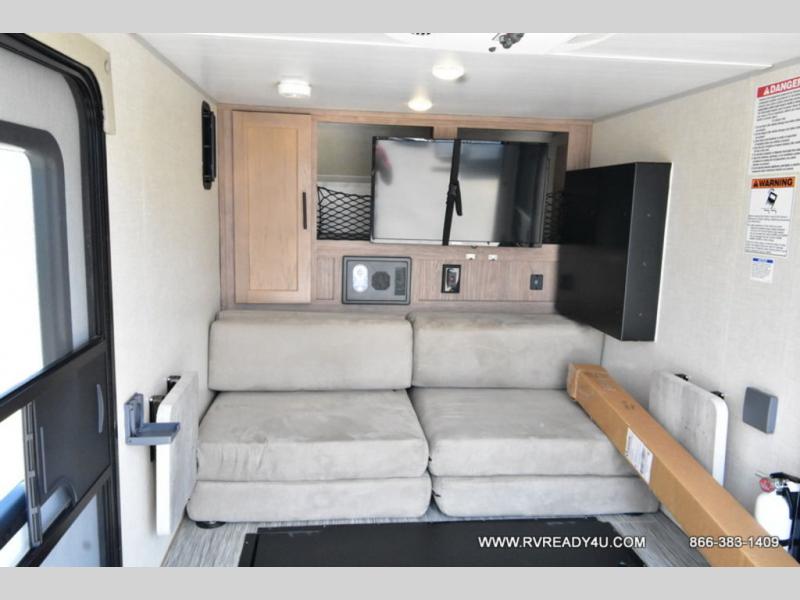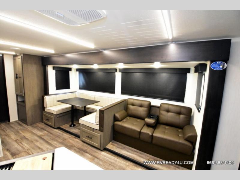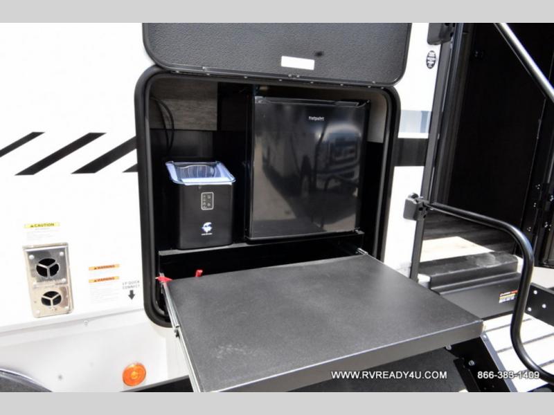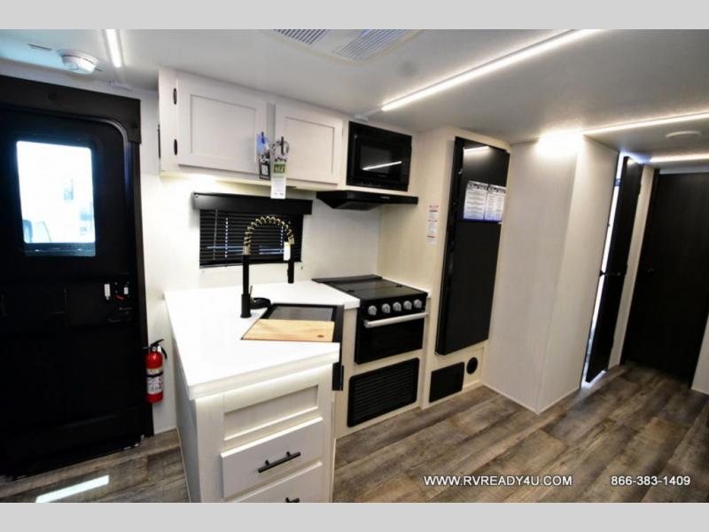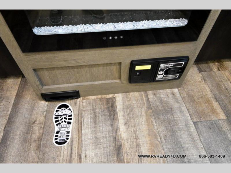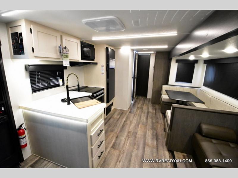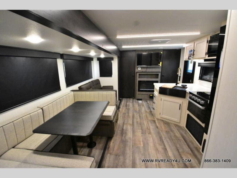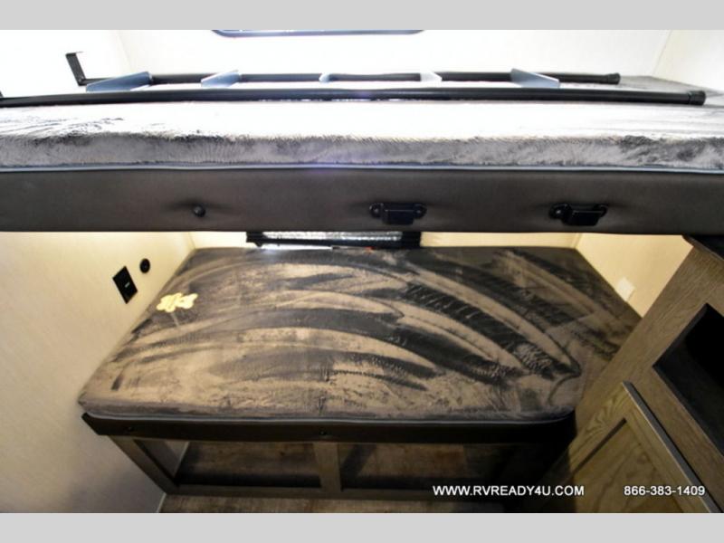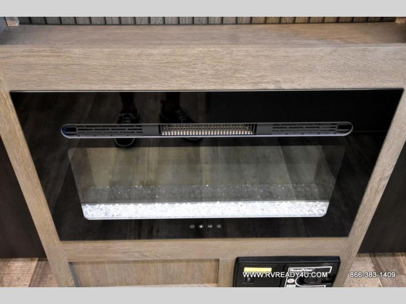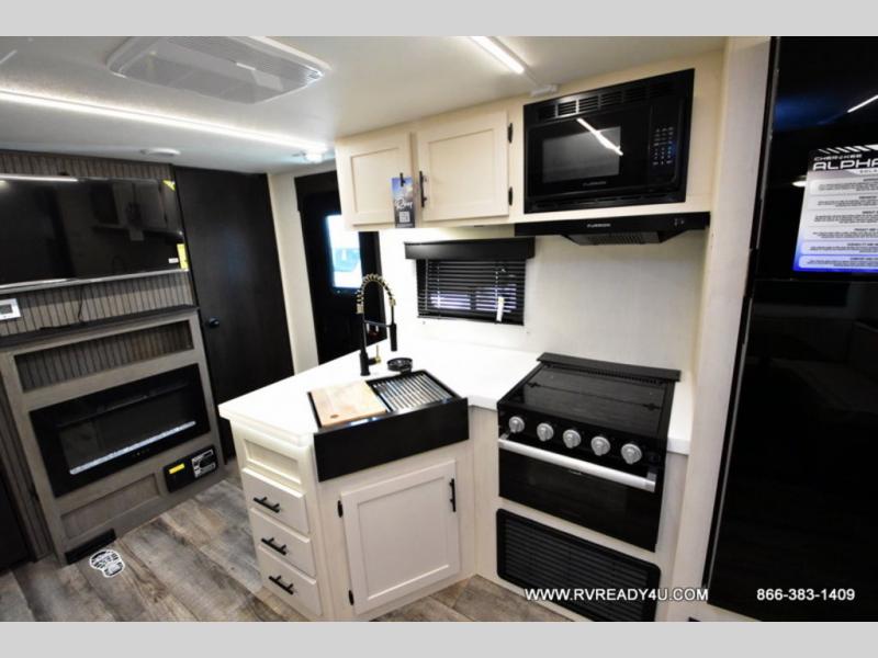Looking for a spacious travel trailer to sleep nine or ten happy campers? You've found it in this Cherokee Alpha Wolf model with a handy outside kitchen, a bunkhouse with a dinette, a front private bedroom, and a large slide out! The main living and kitchen area has a U-shaped dinette to utilize as a dining table, game table, work station, and/or an extra sleeping space. There is also a jackknife sofa for seating, TV watching, or sleeping. From any seating area you can easily view the entertainment center and fireplace which is centered in the unit with doors on either side to the front private bedroom. You will also find a nice pantry and full kitchen amenities including a large sink, and residential-style refrigerator allowing you to easily create meals for your hungry crew. The exterior provides an 18' awning for an outdoor living area over the outside kitchen, and there is ample exterior storage for all of your camping gear like camp chairs, outside games, rugs, and more.