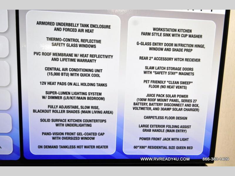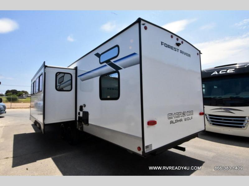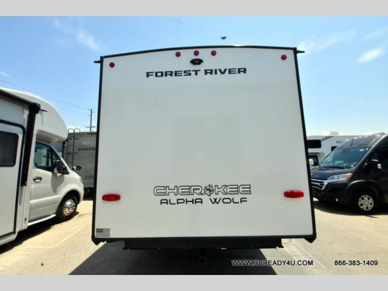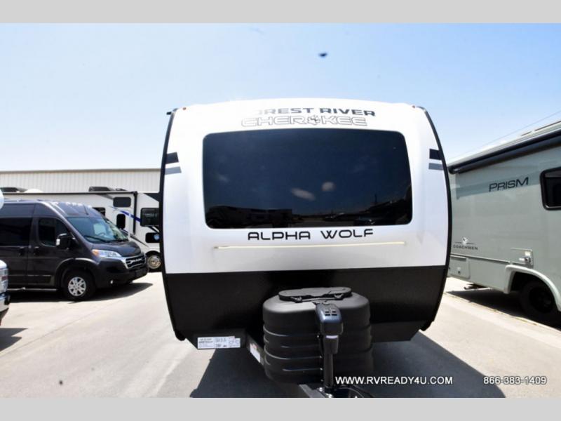 With any Cherokee Alpha Wolf travel trailer by Forest River you'll enjoy outstanding amenities, quality construction, and an affordable price. Each model features a "ToughBend" rigid skirt metal design, 5/8" tongue and groove plywood floor decking, and a "SuperTruss" roof structure that will hold up through years of camping memories. There is a pet friendly "clean sweep" floor design with no heat vents indoors, along with a super lumen lighting system, a 15,000 BTU quick cool central air conditioning, and many more comforts. There are many convenient exterior features such as, Leash Latch pet safety technology, an outside shower with hot and cold water, On The Go rear ladder prep, and exterior steps with oversized landing and quick release. The Weather Guard Package will add protection against the elements with an armored underbelly tank enclosure and forced air heat, thermo-control reflective safety glass windows, and upgraded laminated walls with block foam insulation!