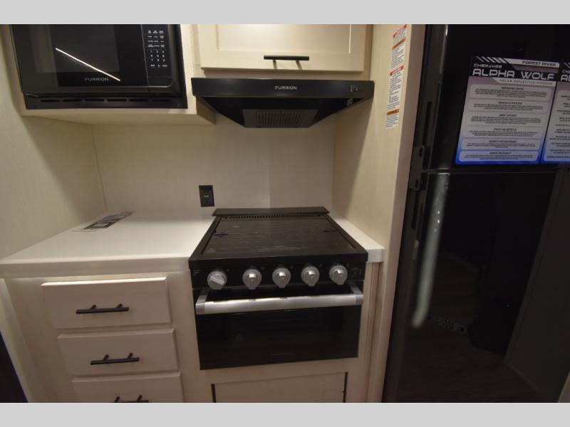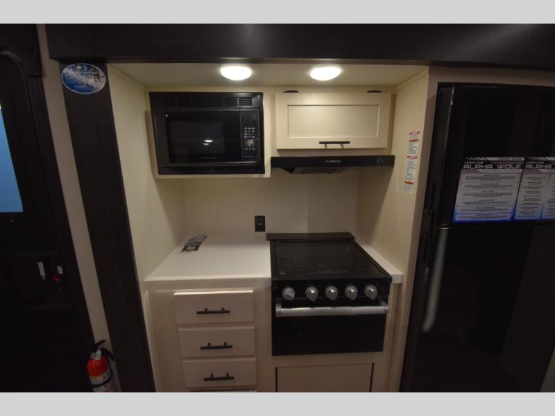 With any Cherokee Alpha Wolf travel trailer by Forest River you'll enjoy outstanding amenities, quality construction, and an affordable price. Each model features a "ToughBend" rigid skirt metal design, 5/8" tongue and groove plywood floor decking, and a "SuperTruss" roof structure that will hold up through years of camping memories. There is a pet friendly "clean sweep" floor design with no heat vents indoors, along with a super lumen lighting system, a 15,000 BTU quick cool central air conditioning, and many more comforts. There are many convenient exterior features such as, Leash Latch pet safety technology, an outside shower with hot and cold water, On The Go rear ladder prep, and exterior steps with oversized landing and quick release. The Weather Guard Package will add protection against the elements with an armored underbelly tank enclosure and forced air heat, thermo-control reflective safety glass windows, and upgraded laminated walls with block foam insulation!