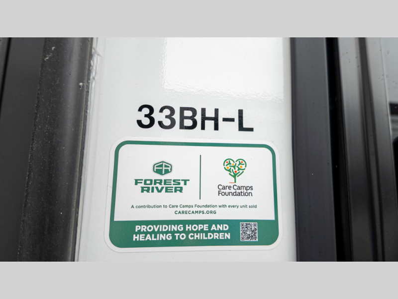 A: The 33BH brings big-family storage and comfort into a manageable floorplan. It features a front private bedroom, a rear bunk area, dual slides, and an outdoor kitchen—all under 35 ft and towable with a robust ¾-ton or well-equipped half-ton truck.