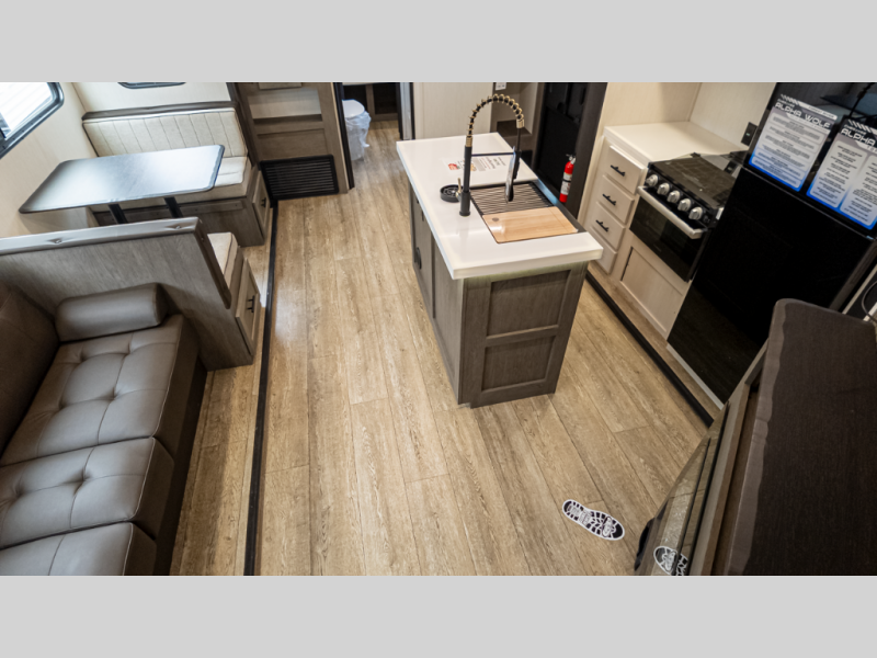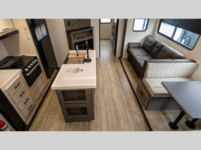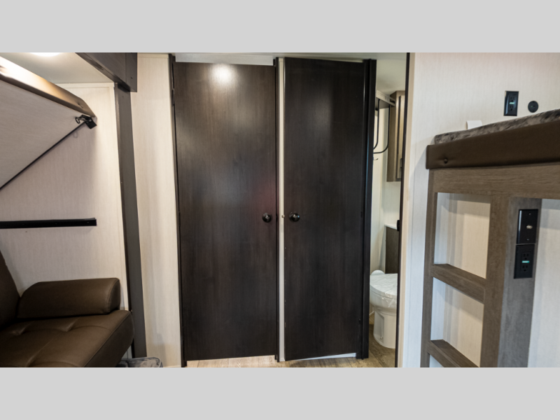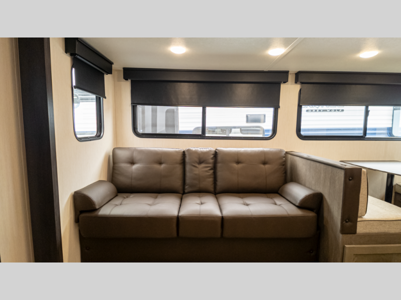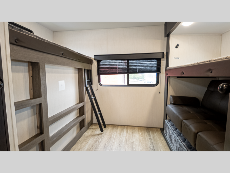 - Roomy layout: Front bedroom, rear bunkhouse with double bunks, dual slides with dinette and kitchen upgrades