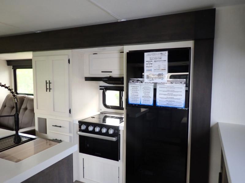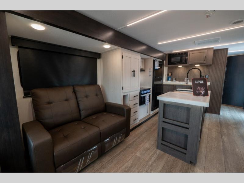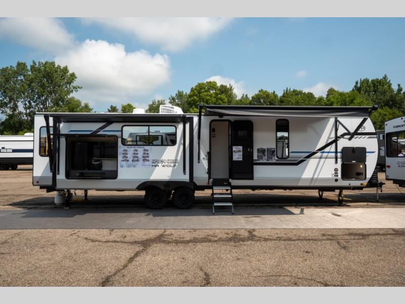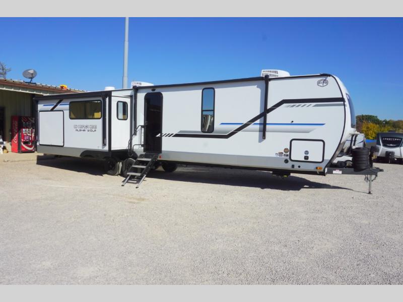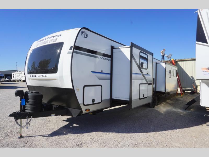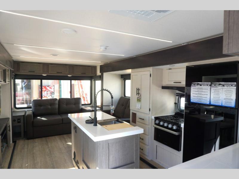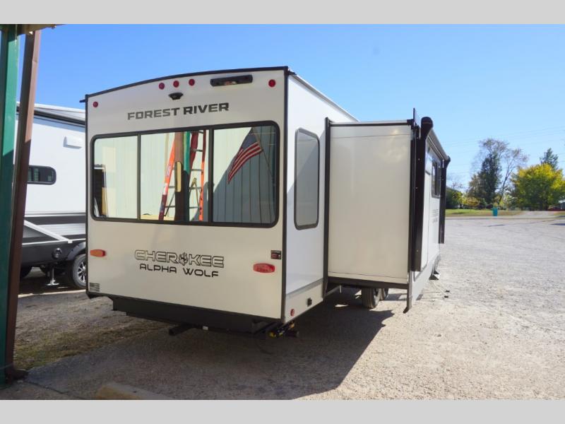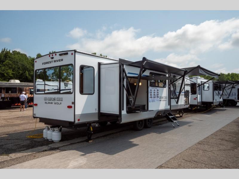 The Cherokee Alpha Wolf 33RL really hits the sweet spot for a couple's camper. Half-ton towable, two opposing slides make for a HUGE living room, 25' of shaded outdoor space, sun bench with tinted bay window, trifold sofa with panoramic windows, and a large outdoor kitchen with awning. Forest River has really packed a lot into the Alpha Wolf! And during our FALLTASTIC SAVINGS event the 33RL is available for just $49,995! And did we mention there's room for the grandkids to tag along. :)