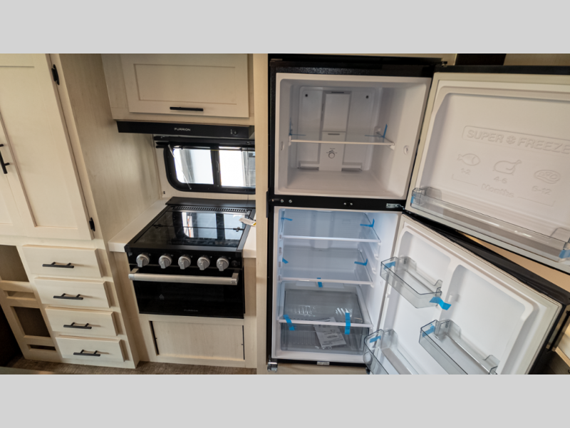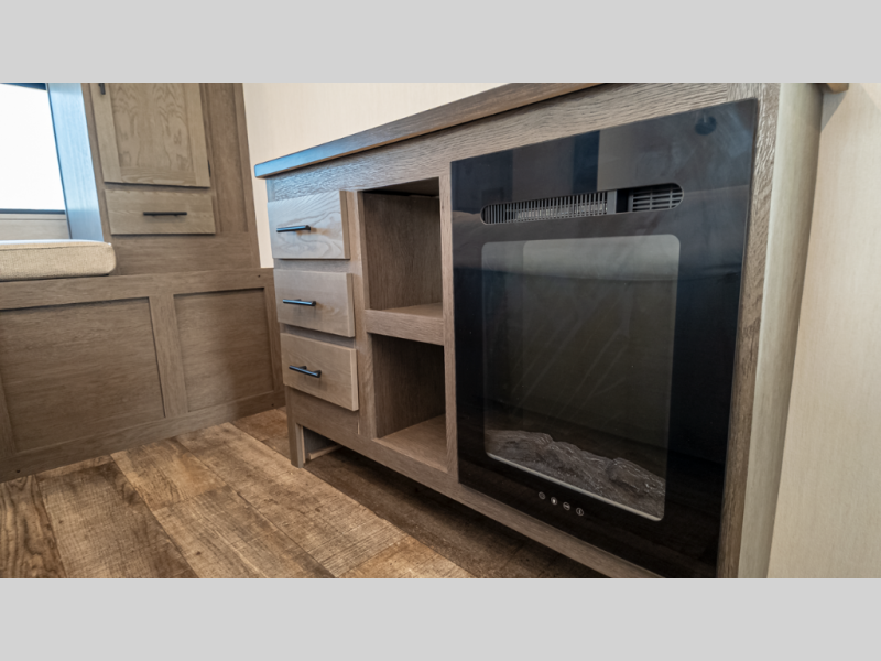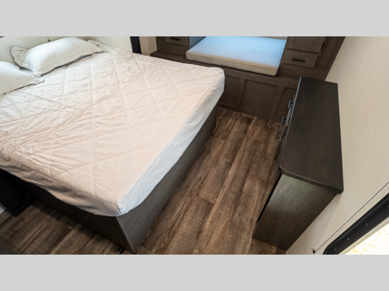 - Island kitchen with storage: Offers more counter, pantry, and layout flexibility than comparable Winnebago or Grand Design models