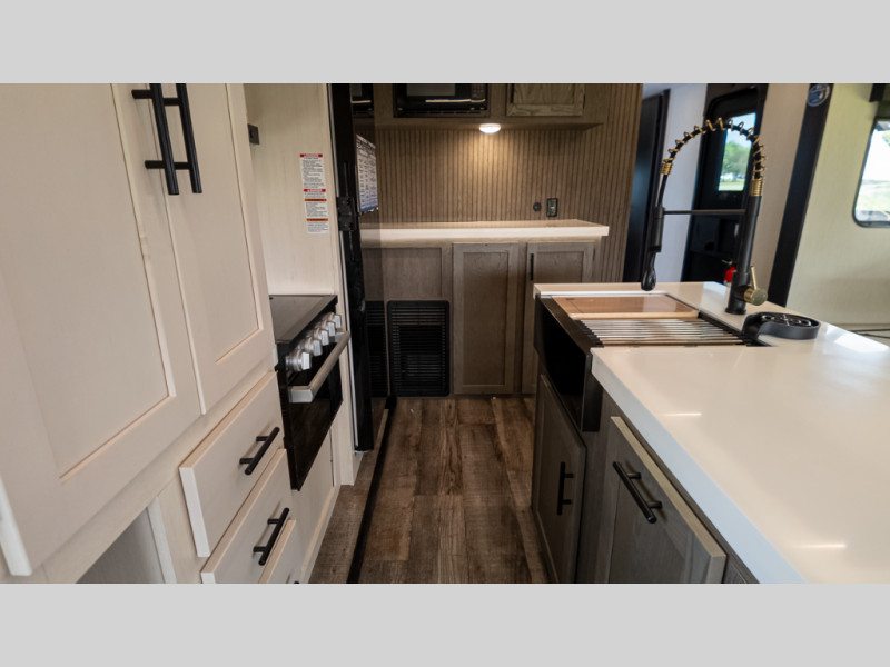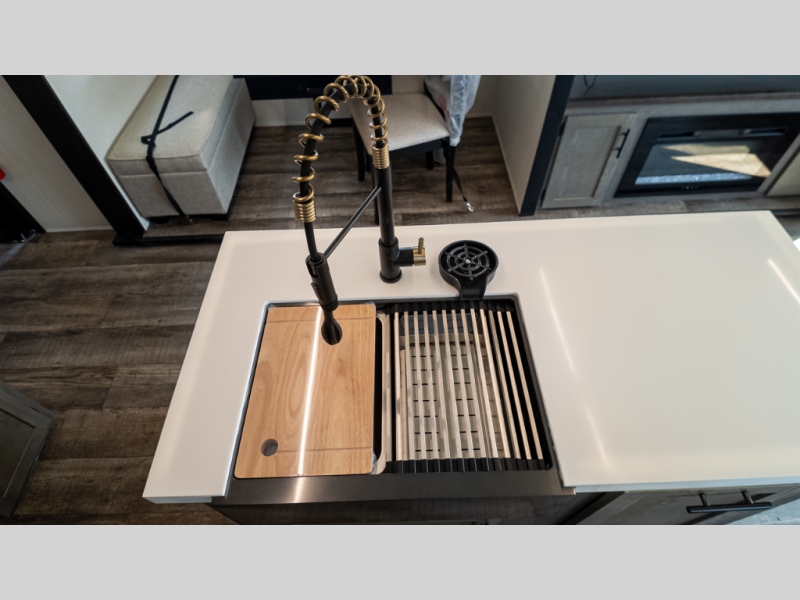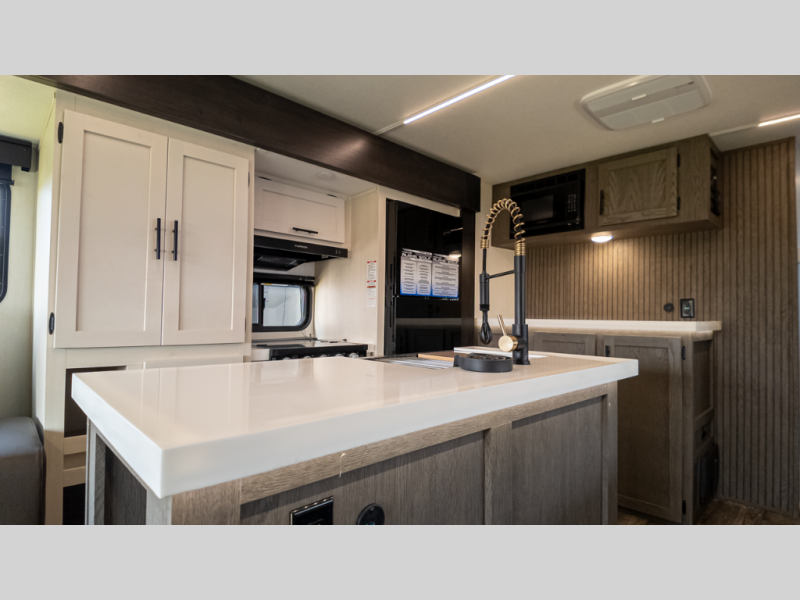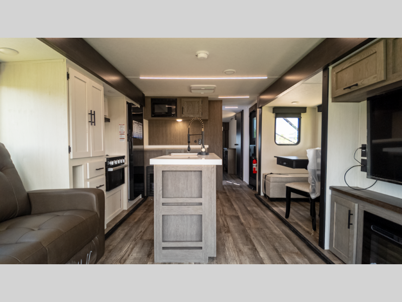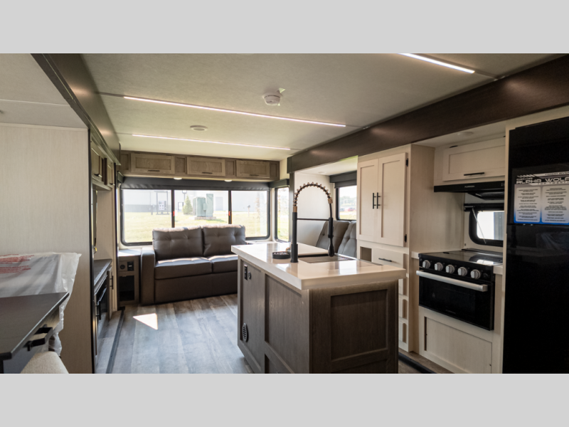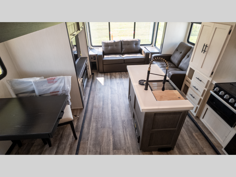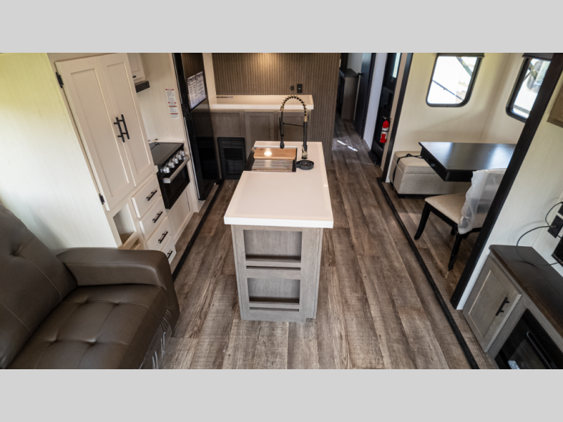 - Island kitchen with high storage and prep space surpasses offerings from Keystone or Grand Design units