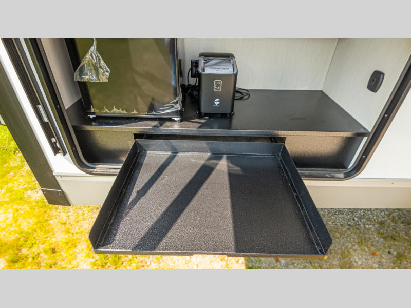 - Outdoor convenience: Exterior griddle, sink, under–awning LED lighting, and solar/camera prep