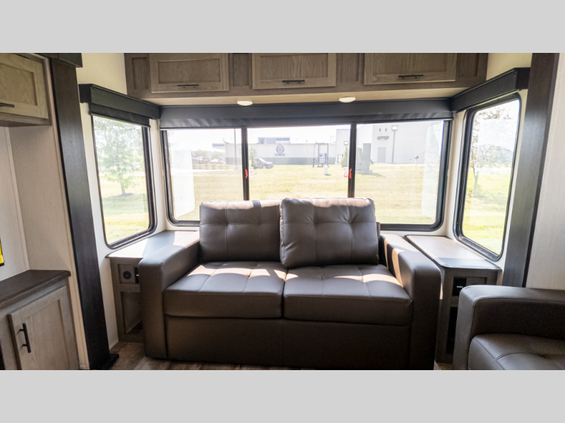 - Slide-enhanced living: Large slide houses booth dinette and hide-a-bed sofa