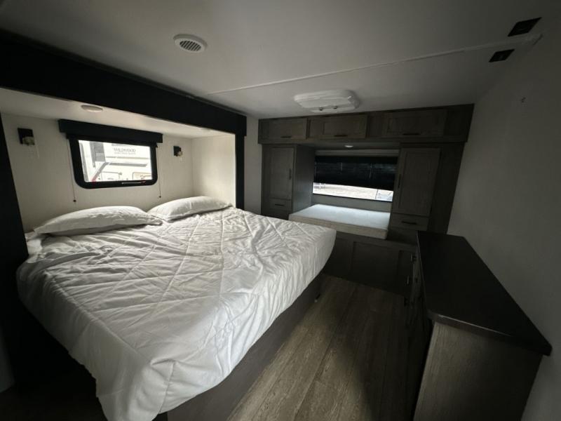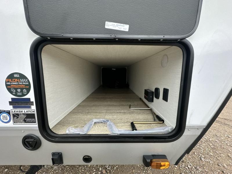 With any Cherokee Alpha Wolf travel trailer by Forest River you'll enjoy outstanding amenities, quality construction, and an affordable price. Each model features a "ToughBend" rigid skirt metal design, 5/8" tongue and groove plywood floor decking, and a "SuperTruss" roof structure that will hold up through years of camping memories. There is a pet friendly "clean sweep" floor design with no heat vents indoors, along with a super lumen lighting system, a 15,000 BTU quick cool central air conditioning, and many more comforts. There are many convenient exterior features such as, Leash Latch pet safety technology, an outside shower with hot and cold water, On The Go rear ladder prep, and exterior steps with oversized landing and quick release. The Weather Guard Package will add protection against the elements with an armored underbelly tank enclosure and forced air heat, thermo-control reflective safety glass windows, and upgraded laminated walls with block foam insulation!