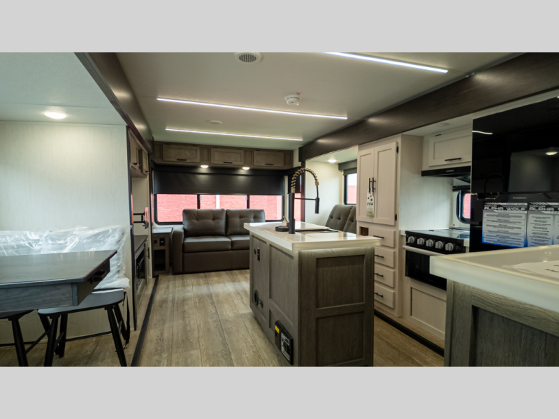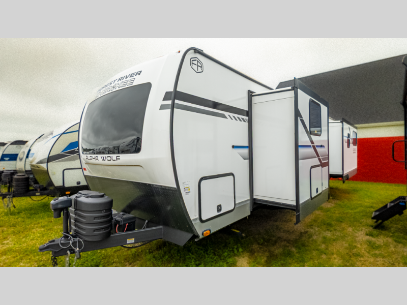With any Cherokee Alpha Wolf travel trailer by Forest River you'll enjoy outstanding amenities, quality construction, and an affordable price. Each model features a "ToughBend" rigid skirt metal design, 5/8" tongue and groove plywood floor decking, and a "SuperTruss" roof structure that will hold up through years of camping memories. There is a pet friendly "clean sweep" floor design with no heat vents indoors, along with a super lumen lighting system, a 15,000 BTU quick cool central air conditioning, and many more comforts. There are many convenient exterior features such as, Leash Latch pet safety technology, an outside shower with hot and cold water, On The Go rear ladder prep, and exterior steps with oversized landing and quick release. The Weather Guard Package will add protection against the elements with an armored underbelly tank enclosure and forced air heat, thermo-control reflective safety glass windows, and upgraded laminated walls with block foam insulation!