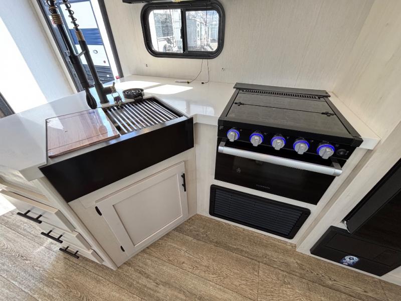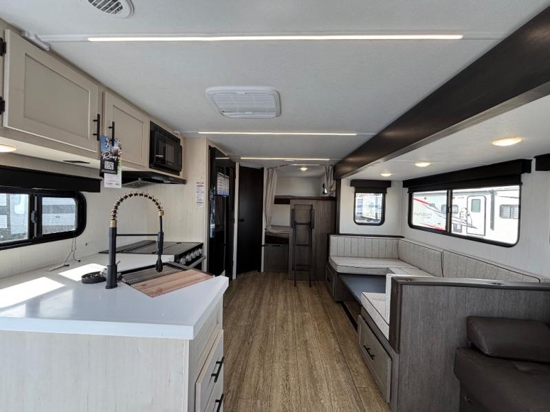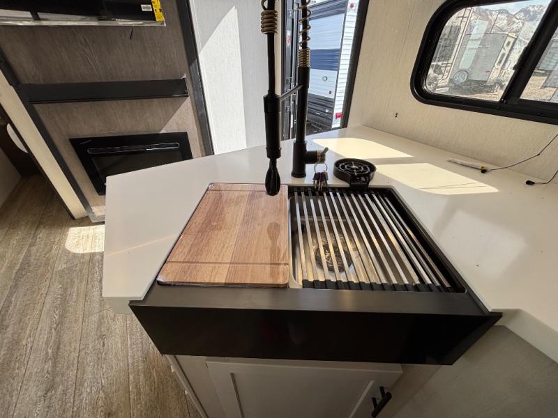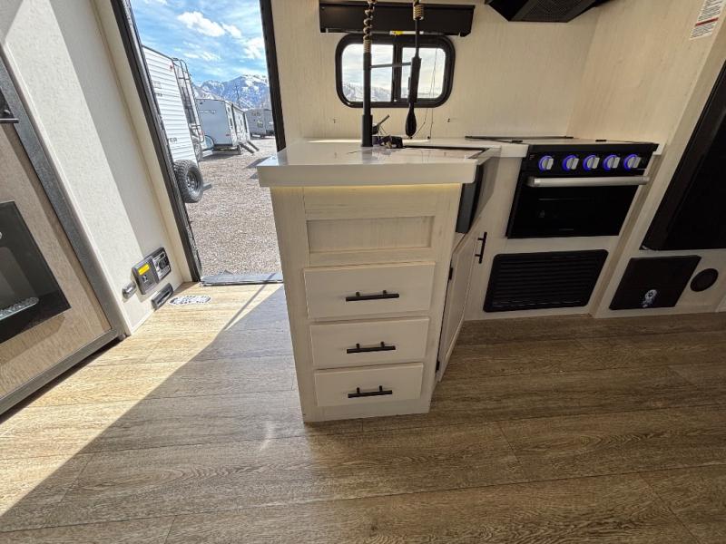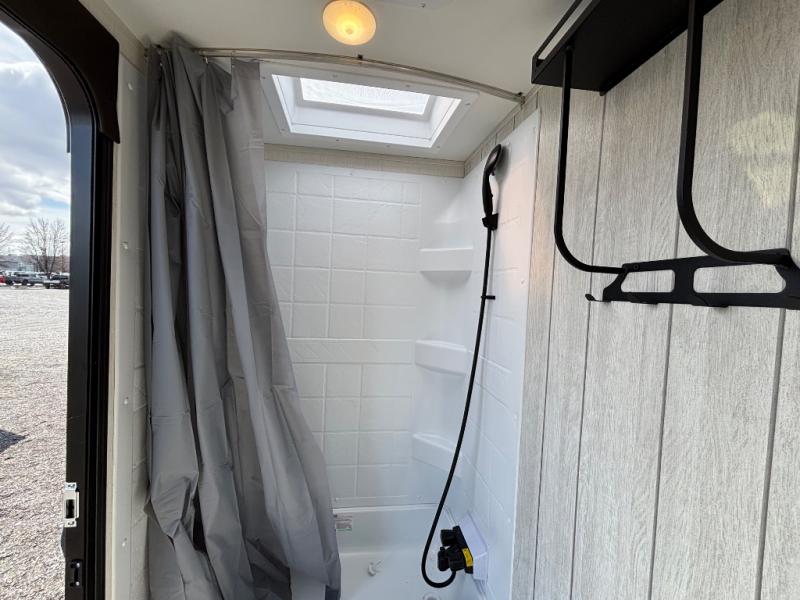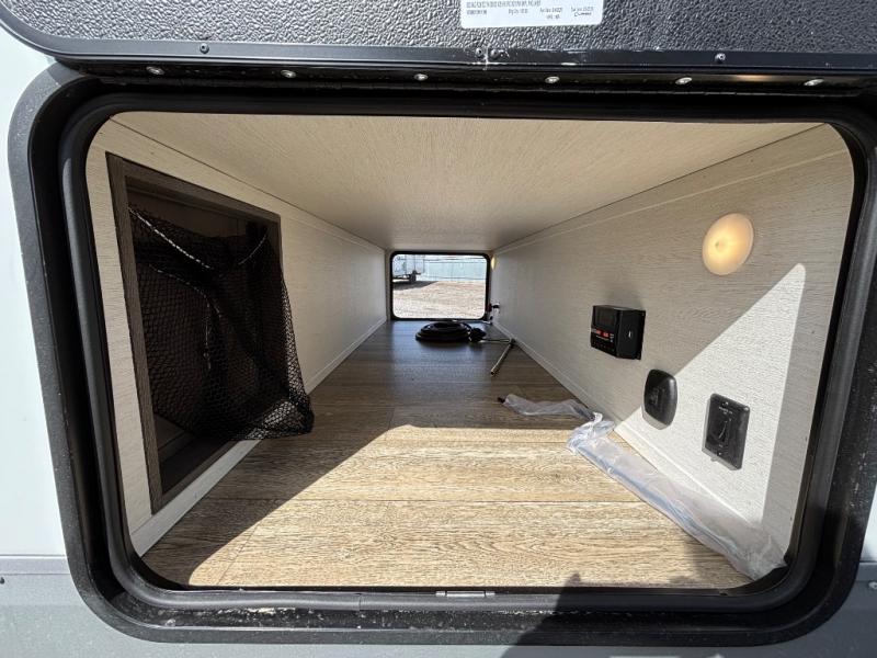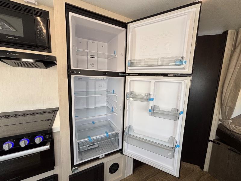 Looking for a multi-sleeper trailer to sleep nine to ten happy campers? You've found it in this dual entry model with an outside kitchen, double-size bunks, and a large slide out! The main living and kitchen area has a U-shaped dinette to utilize as a dining table, game table, work station, and/or an extra sleeping space. You will also find a hidden pantry behind the entertainment center and full kitchen amenities including a large sink and a residential-style refrigerator. The exterior provides a 20' awning for an outdoor living area, outside storage, plus large steps with oversized landing and quick release for convenience. You will also appreciate the Juice Pack that comes with a 100W solar panel, a battery, a 30 AMP solar charger, and more!