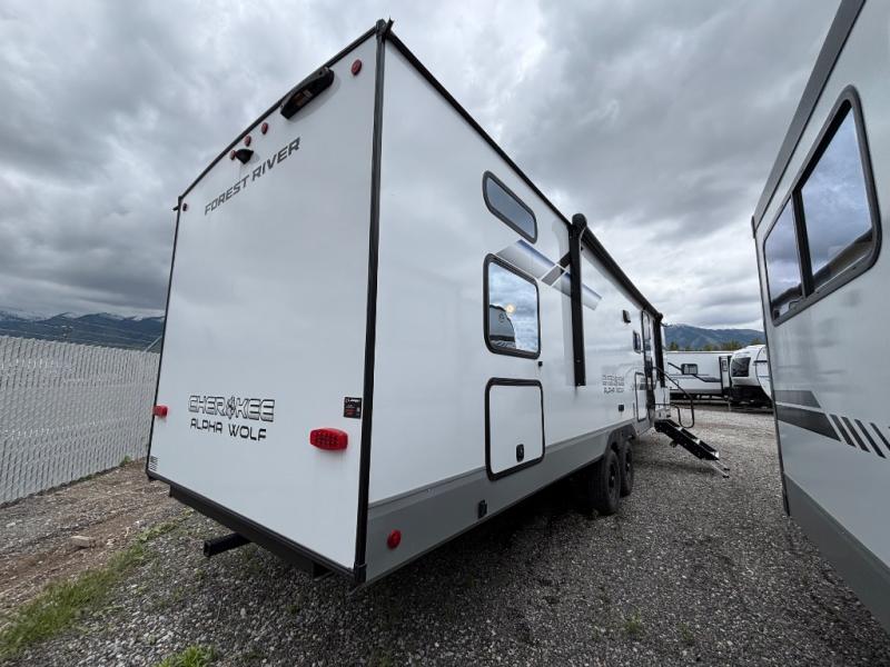 With any Cherokee Alpha Wolf travel trailer by Forest River you'll enjoy outstanding amenities, quality construction, and an affordable price. Each model features a "ToughBend" rigid skirt metal design, 5/8" tongue and groove plywood floor decking, and a "SuperTruss" roof structure that will hold up through years of camping memories. There is a pet friendly "clean sweep" floor design with no heat vents indoors, along with a super lumen lighting system, a 15,000 BTU quick cool central air conditioning, and many more comforts. There are many convenient exterior features such as, Leash Latch pet safety technology, an outside shower with hot and cold water, On The Go rear ladder prep, and exterior steps with oversized landing and quick release. The Weather Guard Package will add protection against the elements with an armored underbelly tank enclosure and forced air heat, thermo-control reflective safety glass windows, and upgraded laminated walls with block foam insulation!