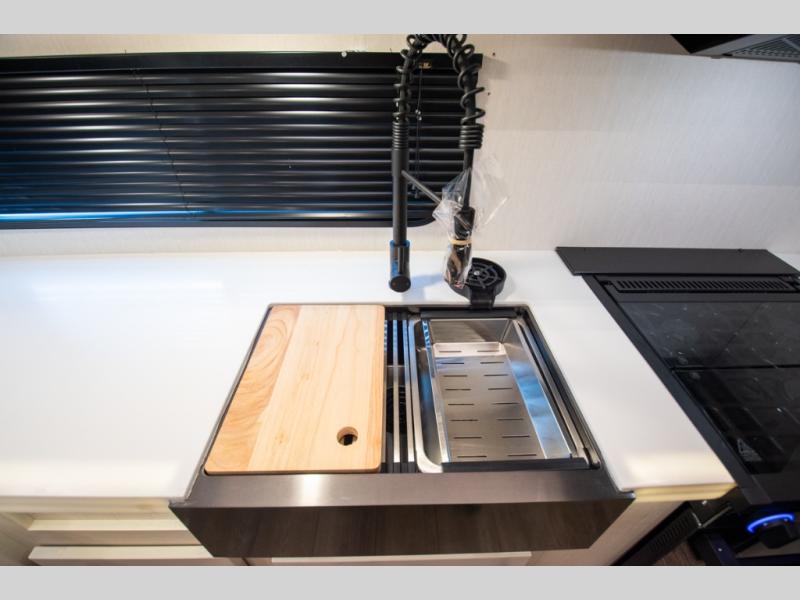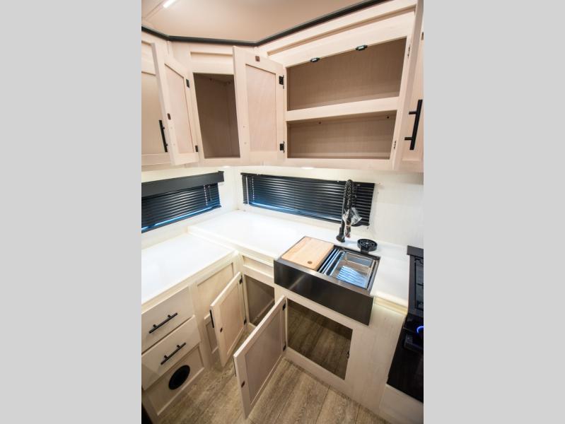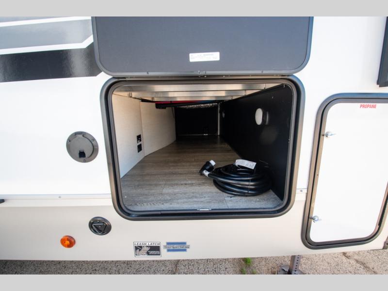 You'll have the very best time tackling outdoor adventures with the Forest River Cherokee Arctic Wolf fifth wheel! Each model has been constructed with a “ToughBend” rigid skirt metal design, Leash Latch pet safety technology, an outside shower with hot/cold water, a 1x engineered wood “SuperTruss” roof structure with 3/8" decking, and aluminum rims. The interior offers you a dual-zone Bluetooth stereo optimized for USB flash drives, iPods, and other MP3 players, and you'll find motion-sensor lighting to help you see when it's dark. There is an automatic leveling and stabilization system, as well as a smart monitor panel with smart phone Bluetooth connectivity. These models have been prepped for a second air conditioner, and an optional rear storage travel rack.