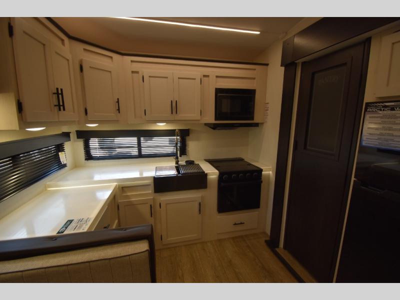 You'll have the very best time tackling outdoor adventures with the Forest River Cherokee Arctic Wolf fifth wheel! Each model has been constructed with a “ToughBend” rigid skirt metal design, Leash Latch pet safety technology, an outside shower with hot/cold water, and a 1x engineered wood “SuperTruss” roof structure with 3/8" decking for added durability. There is also an automatic leveling and stabilization system, slam latch storage doors with "Safety Stay" magnets, plus 12V heat pads on all holding tanks with help withstand colder temperatures. Inside, you'll love the solid surface kitchen countertops with underlighting, along with a carpetless floor design, and fully adjustable, slow rise, blackout roller shades. The on-demand tankless hot water heater will provide endless hot water and the central A/C unit with Quick Cool will ensure your comfort during those hot summer camping months. There are many more stand-out features found on these fifth wheels; check them out!