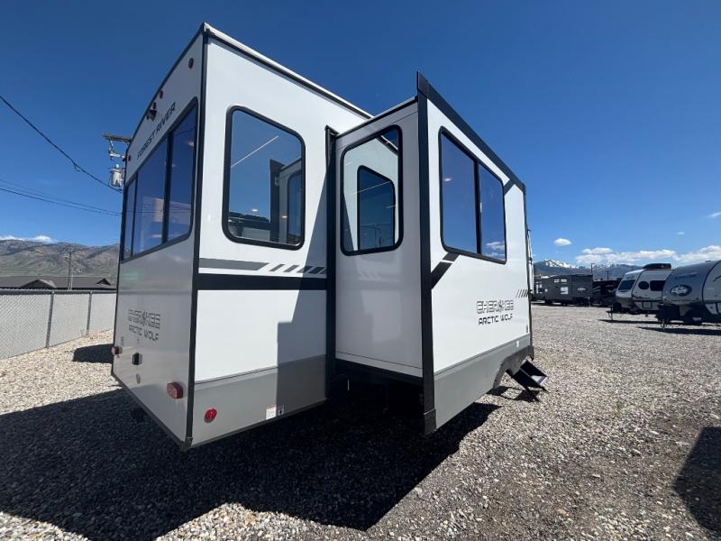 You'll have the very best time tackling outdoor adventures with the Forest River Cherokee Arctic Wolf fifth wheel! Each model has been constructed with a “ToughBend” rigid skirt metal design, Leash Latch pet safety technology, an outside shower with hot/cold water, and a 1x engineered wood “SuperTruss” roof structure with 3/8" decking for added durability. There is also an automatic leveling and stabilization system, slam latch storage doors with "Safety Stay" magnets, plus 12V heat pads on all holding tanks with help withstand colder temperatures. Inside, you'll love the solid surface kitchen countertops with underlighting, along with a carpetless floor design, and fully adjustable, slow rise, blackout roller shades. The on-demand tankless hot water heater will provide endless hot water and the central A/C unit with Quick Cool will ensure your comfort during those hot summer camping months. There are many more stand-out features found on these fifth wheels; check them out!