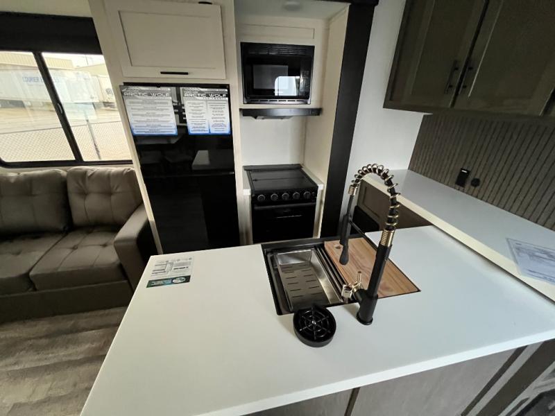 You'll have the very best time tackling outdoor adventures with the Forest River Cherokee Arctic Wolf fifth wheel! Each model has been constructed with a “ToughBend” rigid skirt metal design, Leash Latch pet safety technology, an outside shower with hot/cold water, and a 1x engineered wood “SuperTruss” roof structure with 3/8" decking for added durability. There is also an automatic leveling and stabilization system, slam latch storage doors with "Safety Stay" magnets, plus 12V heat pads on all holding tanks with help withstand colder temperatures. Inside, you'll love the solid surface kitchen countertops with underlighting, along with a carpetless floor design, and fully adjustable, slow rise, blackout roller shades. The on-demand tankless hot water heater will provide endless hot water and the central A/C unit with Quick Cool will ensure your comfort during those hot summer camping months. There are many more stand-out features found on these fifth wheels; check them out!
