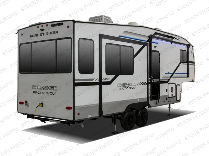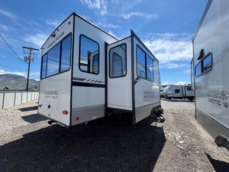 You'll have the very best time tackling outdoor adventures with the Forest River Cherokee Arctic Wolf fifth wheel! Each model has been constructed with a “ToughBend” rigid skirt metal design, Leash Latch pet safety technology, an outside shower with hot/cold water, and a 1x engineered wood “SuperTruss” roof structure with 3/8" decking for added durability. There is also an automatic leveling and stabilization system, slam latch storage doors with "Safety Stay" magnets, plus 12V heat pads on all holding tanks with help withstand colder temperatures. Inside, you'll love the solid surface kitchen countertops with underlighting, along with a carpetless floor design, and fully adjustable, slow rise, blackout roller shades. The on-demand tankless hot water heater will provide endless hot water and the central A/C unit with Quick Cool will ensure your comfort during those hot summer camping months. There are many more stand-out features found on these fifth wheels; check them out!