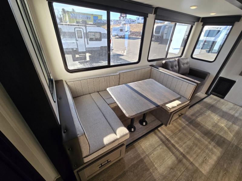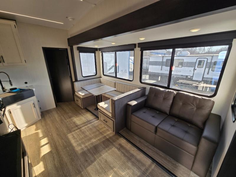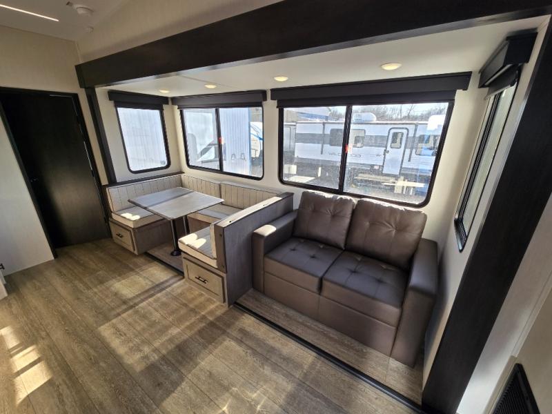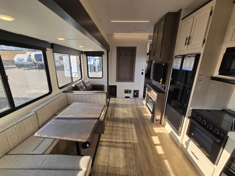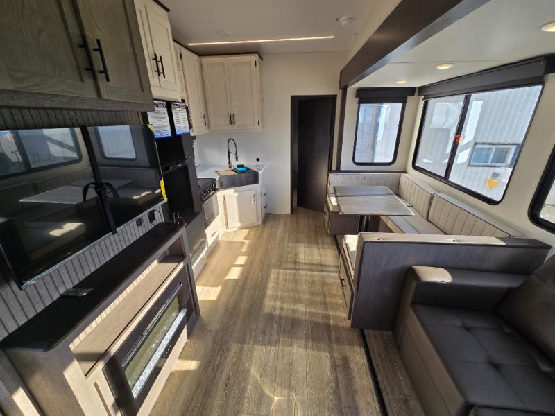 Let the fun times begin with the purchase of this Cherokee Arctic Wolf fifth wheel! You'll have loads of sleeping space for ten tired travelers with the front private bedroom, rear private bunkhouse, U-shaped dinette, and tri-fold sofa. You'll also have excellent storage space with the bunkhouse wardrobe, large walk-in pantry next to the entry door, and the outside storage areas. The large slide in the main living area offers more living space, and the fireplace will make it feel more like home.