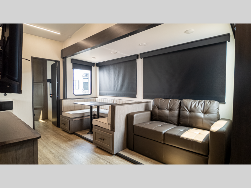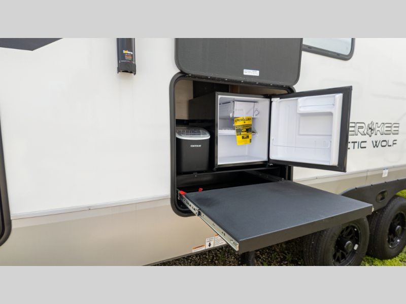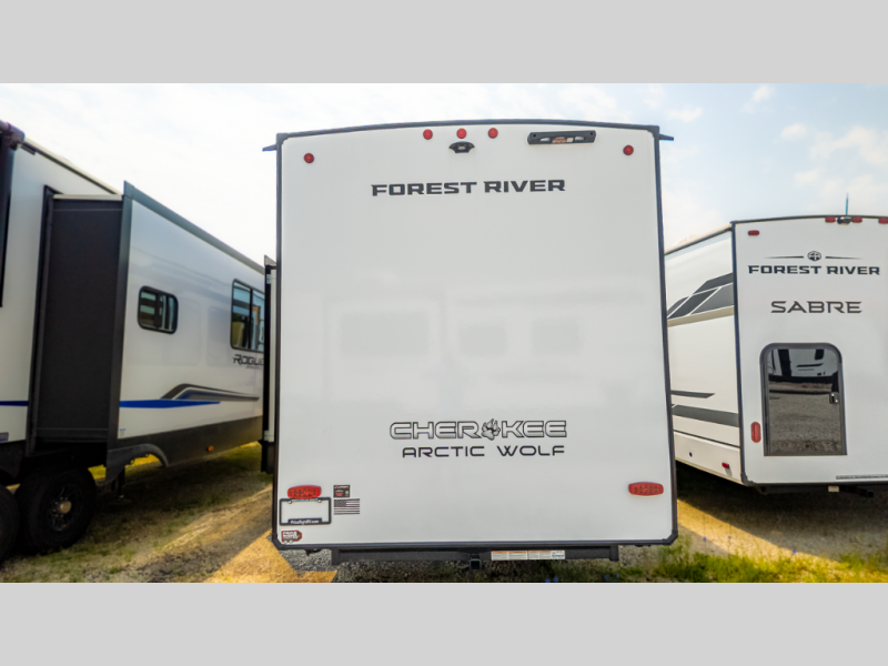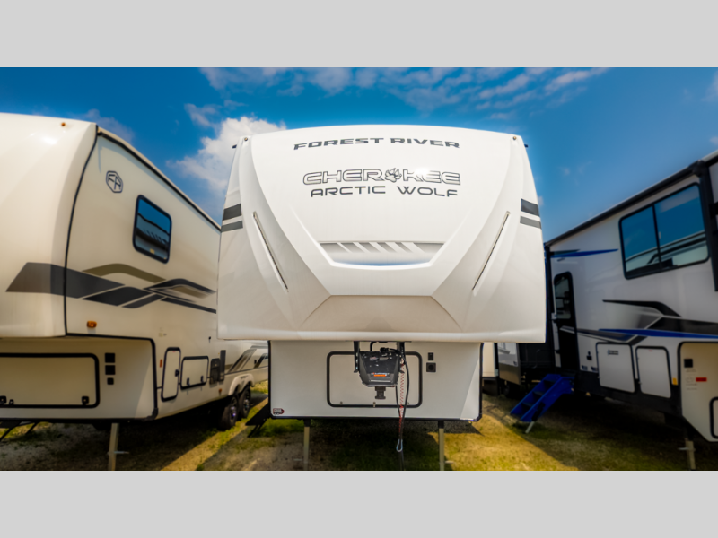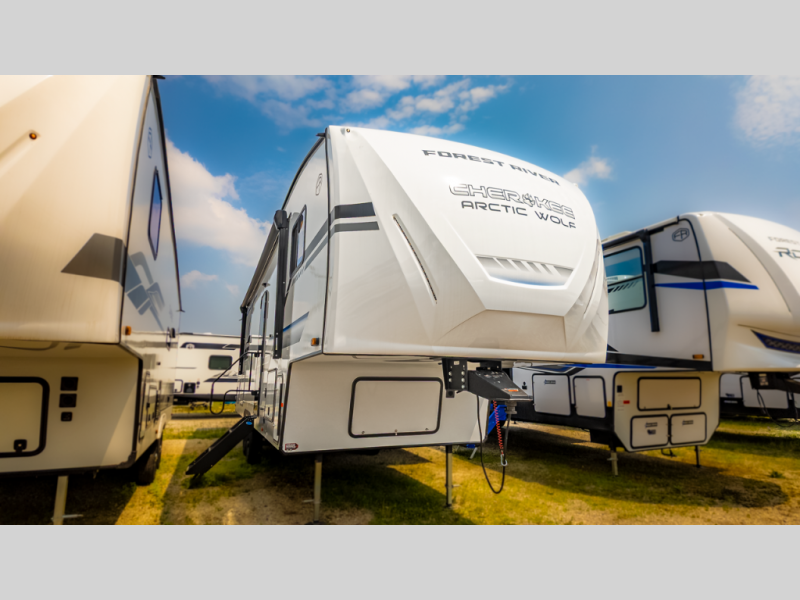 You'll have the very best time tackling outdoor adventures with the Forest River Cherokee Arctic Wolf fifth wheel! Each model has been constructed with a “ToughBend” rigid skirt metal design, Leash Latch pet safety technology, an outside shower with hot/cold water, and a 1x engineered wood “SuperTruss” roof structure with 3/8" decking for added durability. There is also an automatic leveling and stabilization system, slam latch storage doors with "Safety Stay" magnets, plus 12V heat pads on all holding tanks with help withstand colder temperatures. Inside, you'll love the solid surface kitchen countertops with underlighting, along with a carpetless floor design, and fully adjustable, slow rise, blackout roller shades. The on-demand tankless hot water heater will provide endless hot water and the central A/C unit with Quick Cool will ensure your comfort during those hot summer camping months. There are many more stand-out features found on these fifth wheels; check them out!