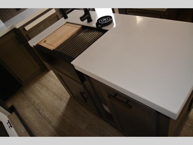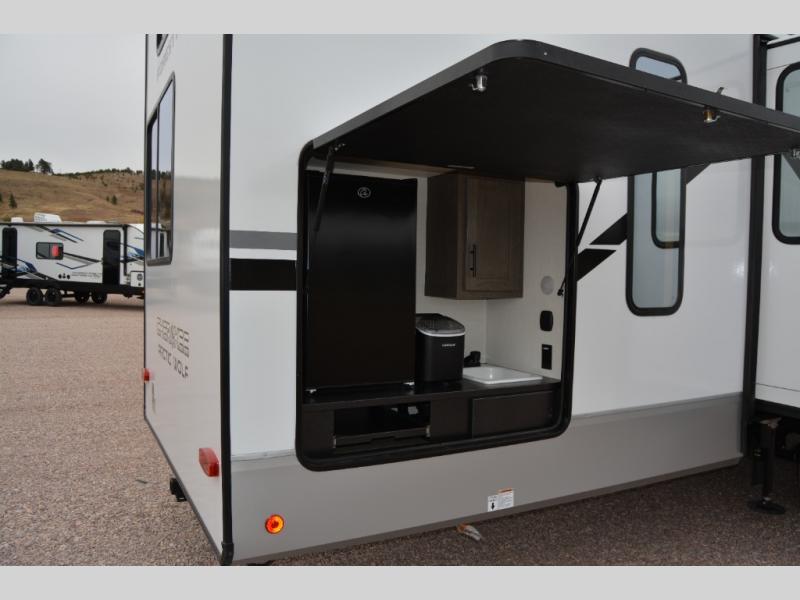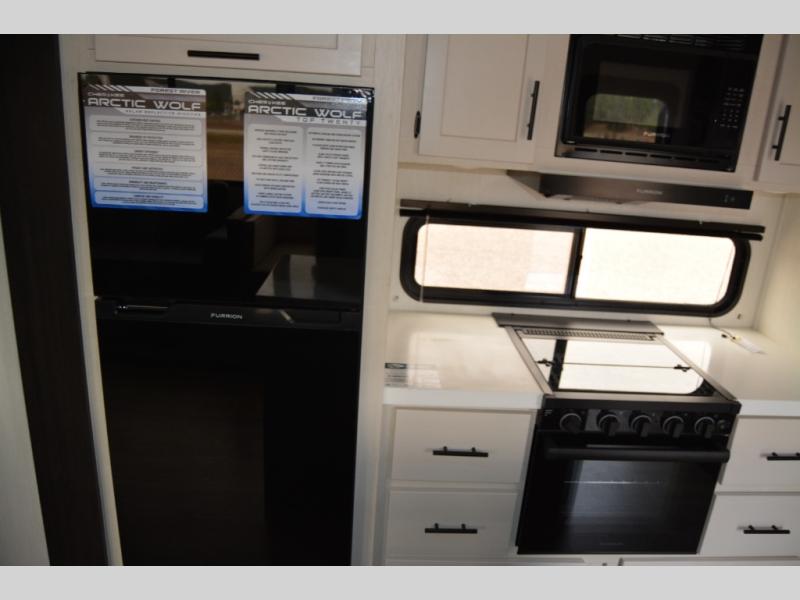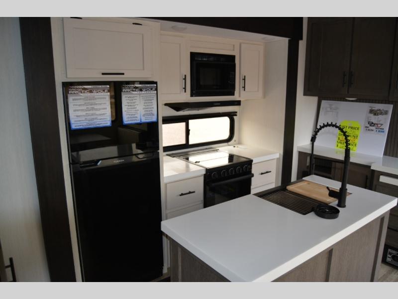 You'll have the very best time tackling outdoor adventures with the Forest River Cherokee Arctic Wolf fifth wheel! Each model has been constructed with a “ToughBend” rigid skirt metal design, Leash Latch pet safety technology, an outside shower with hot/cold water, and a 1x engineered wood “SuperTruss” roof structure with 3/8" decking for added durability. There is also an automatic leveling and stabilization system, slam latch storage doors with "Safety Stay" magnets, plus 12V heat pads on all holding tanks with help withstand colder temperatures. Inside, you'll love the solid surface kitchen countertops with underlighting, along with a carpetless floor design, and fully adjustable, slow rise, blackout roller shades. The on-demand tankless hot water heater will provide endless hot water and the central A/C unit with Quick Cool will ensure your comfort during those hot summer camping months. There are many more stand-out features found on these fifth wheels; check them out!
