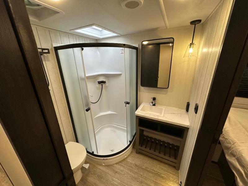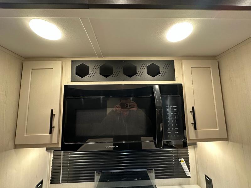You will have amazing residential comfort in the Forest River Cherokee Arctic Wolf fifth wheels! These bed slide units have a “SuperStor” dual-cavern basement storage compartment to allow you to bring more gear, and they have been constructed with a “ToughBend” rigid skirt metal design, a 1x engineered wood “SuperTruss” roof structure with 3/8" decking, and a 5/8” tongue-and-groove plywood floor decking. Each model includes Leash Latch pet safety technology, an outside shower with hot/cold water, preparations for an exterior TV, and motion-sensing lighting. The supersized central air conditioning unit (15,000 BTU) with quick cool and second oversized 15,000 BTU ducted A/C will cool your unit down in a snap when you camp in the hot summer months.