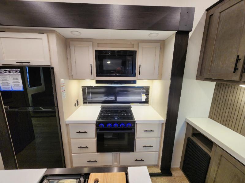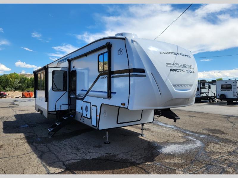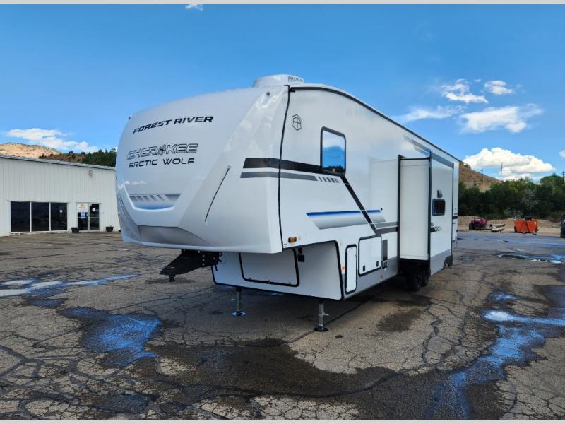 You'll have the very best time tackling outdoor adventures with the Forest River Cherokee Arctic Wolf fifth wheel! Each model has been constructed with a “ToughBend” rigid skirt metal design, Leash Latch pet safety technology, an outside shower with hot/cold water, and a 1x engineered wood “SuperTruss” roof structure with 3/8" decking for added durability. There is also an automatic leveling and stabilization system, slam latch storage doors with "Safety Stay" magnets, plus 12V heat pads on all holding tanks with help withstand colder temperatures. Inside, you'll love the solid surface kitchen countertops with underlighting, along with a carpetless floor design, and fully adjustable, slow rise, blackout roller shades. The on-demand tankless hot water heater will provide endless hot water and the central A/C unit with Quick Cool will ensure your comfort during those hot summer camping months. There are many more stand-out features found on these fifth wheels; check them out!