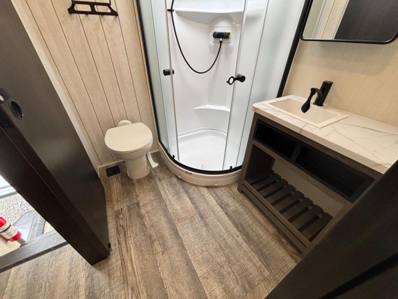 You will have amazing residential comfort in the Forest River Cherokee Arctic Wolf Suite fifth wheels! These units have a “SuperStor” basement storage compartment to allow you to bring more gear, and they have been constructed with a “ToughBend” rigid skirt metal design, a 1x engineered wood “SuperTruss” roof structure with 3/8" decking, and a 5/8” tongue-and-groove plywood floor decking. Each model includes Leash Latch pet safety technology, an outside shower with hot/cold water, preparations for an exterior TV, and motion-sensing lighting. The supersized central air conditioning unit (15,000 BTU) with quick cool and second oversized 15,000 BTU ducted A/C will cool your unit down in a snap when you camp in the hot summer months.