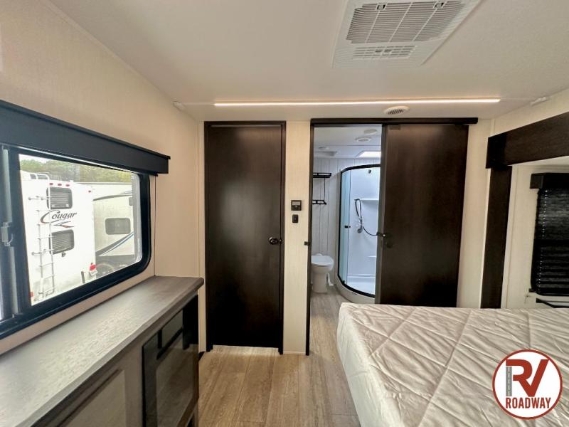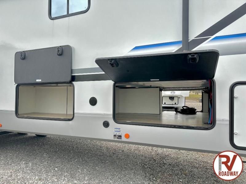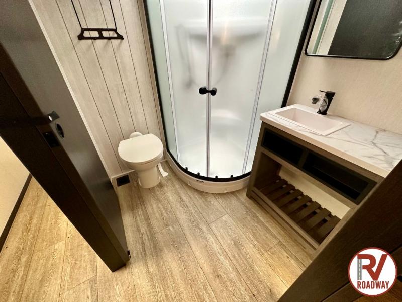 You will have amazing residential comfort in the Forest River Cherokee Arctic Wolf Suite fifth wheels! These units have a “SuperStor” dual-cavern basement storage compartment to allow you to bring more gear, and they have been constructed with a “ToughBend” rigid skirt metal design, a 1x engineered wood “SuperTruss” roof structure with 3/8" decking, and a 5/8” tongue-and-groove plywood floor decking. Each model includes Leash Latch pet safety technology, an outside shower with hot/cold water, preparations for an exterior TV, motion-sensing lighting, and a smart monitor panel with smart phone Bluetooth connectivity. The supersized central air conditioning unit (15,000 BTU) with quick cool and second oversized 15,000 BTU ducted air conditioner will cool your unit down in a snap when you camp in the hot summer months.