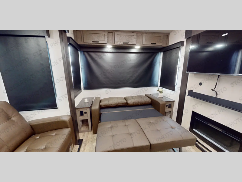 You will have amazing residential comfort in the Forest River Cherokee Arctic Wolf Suite fifth wheels! These units have a “SuperStor” dual-cavern basement storage compartment to allow you to bring more gear, and they have been constructed with a “ToughBend” rigid skirt metal design, a 1x engineered wood “SuperTruss” roof structure with 3/8" decking, and a 5/8” tongue-and-groove plywood floor decking. Each model includes Leash Latch pet safety technology, an outside shower with hot/cold water, preparations for an exterior TV, motion-sensing lighting, and a smart monitor panel with smart phone Bluetooth connectivity. The supersized central air conditioning unit (15,000 BTU) with quick cool and second oversized 15,000 BTU ducted air conditioner will cool your unit down in a snap when you camp in the hot summer months.