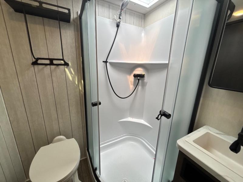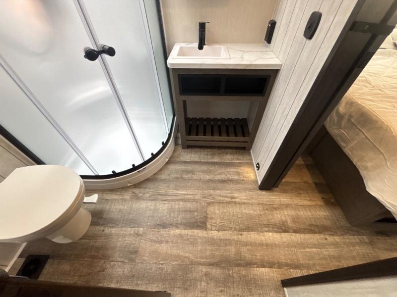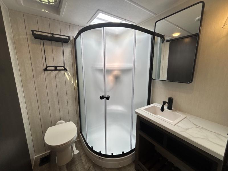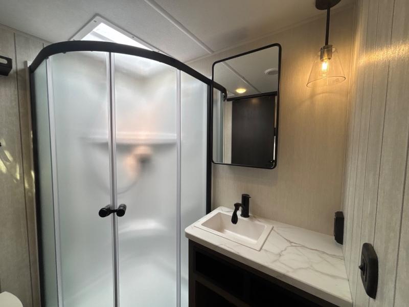You will have amazing residential comfort in the Forest River Cherokee Arctic Wolf Suite fifth wheels! These units have a “SuperStor” basement storage compartment to allow you to bring more gear, and they have been constructed with a “ToughBend” rigid skirt metal design, a 1x engineered wood “SuperTruss” roof structure with 3/8" decking, and a 5/8” tongue-and-groove plywood floor decking. Each model includes Leash Latch pet safety technology, an outside shower with hot/cold water, preparations for an exterior TV, and motion-sensing lighting. The supersized central air conditioning unit (15,000 BTU) with quick cool and second oversized 15,000 BTU ducted A/C will cool your unit down in a snap when you camp in the hot summer months.