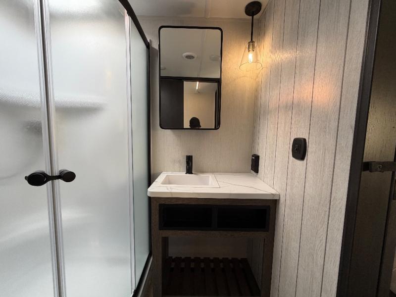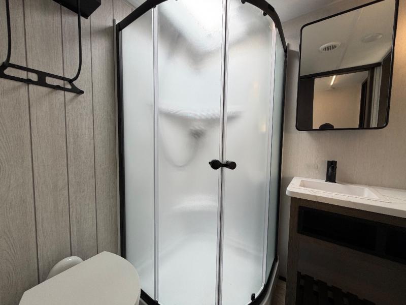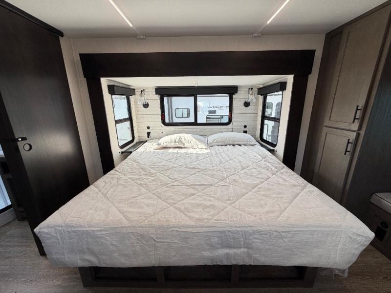You will have amazing residential comfort in the Forest River Cherokee Arctic Wolf Suite fifth wheels! These units have a “SuperStor” basement storage compartment to allow you to bring more gear, and they have been constructed with a “ToughBend” rigid skirt metal design, a 1x engineered wood “SuperTruss” roof structure with 3/8" decking, and a 5/8” tongue-and-groove plywood floor decking. Each model includes Leash Latch pet safety technology, an outside shower with hot/cold water, preparations for an exterior TV, and motion-sensing lighting. The supersized central air conditioning unit (15,000 BTU) with quick cool and second oversized 15,000 BTU ducted A/C will cool your unit down in a snap when you camp in the hot summer months.