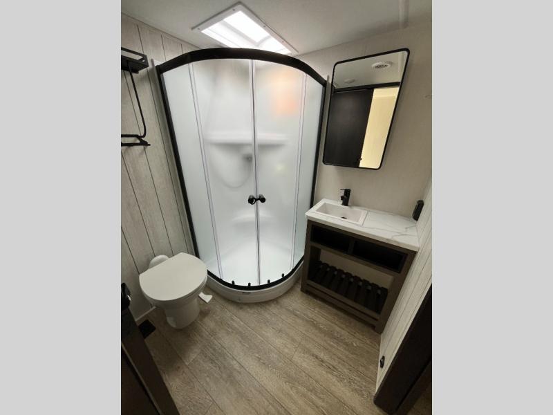You will have amazing residential comfort in the Forest River Cherokee Arctic Wolf Suite fifth wheels! These units have a “SuperStor” basement storage compartment to allow you to bring more gear, and they have been constructed with a “ToughBend” rigid skirt metal design, a 1x engineered wood “SuperTruss” roof structure with 3/8" decking, and a 5/8” tongue-and-groove plywood floor decking. Each model includes Leash Latch pet safety technology, an outside shower with hot/cold water, preparations for an exterior TV, and motion-sensing lighting. The supersized central air conditioning unit (15,000 BTU) with quick cool and second oversized 15,000 BTU ducted A/C will cool your unit down in a snap when you camp in the hot summer months.