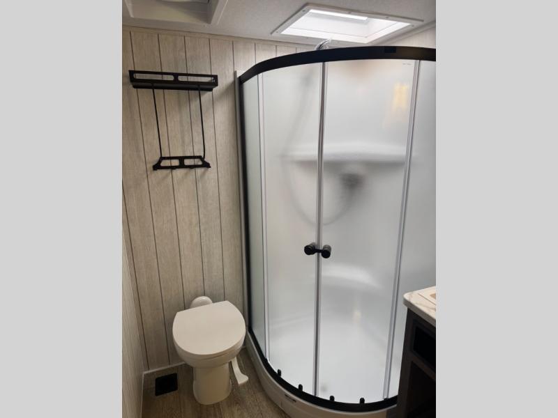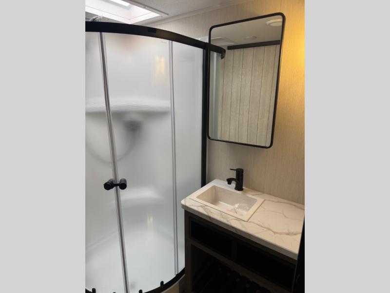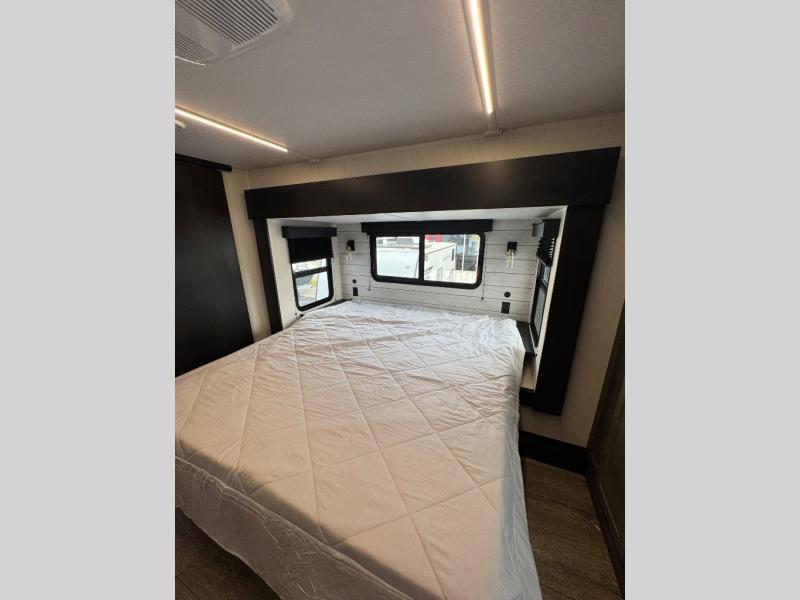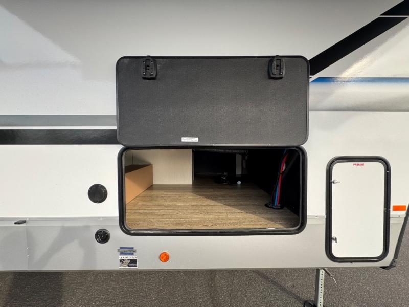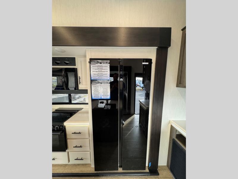 You will have amazing residential comfort in the Forest River Cherokee Arctic Wolf Suite fifth wheels! These units have a “SuperStor” dual-cavern basement storage compartment to allow you to bring more gear, and they have been constructed with a “ToughBend” rigid skirt metal design, a 1x engineered wood “SuperTruss” roof structure with 3/8" decking, and a 5/8” tongue-and-groove plywood floor decking. Each model includes Leash Latch pet safety technology, an outside shower with hot/cold water, preparations for an exterior TV, and motion-sensing lighting. The supersized central air conditioning unit (15,000 BTU) with quick cool and second oversized 15,000 BTU ducted A/C will cool your unit down in a snap when you camp in the hot summer months.