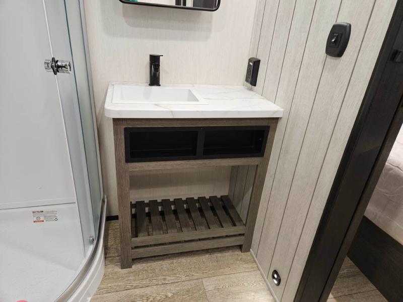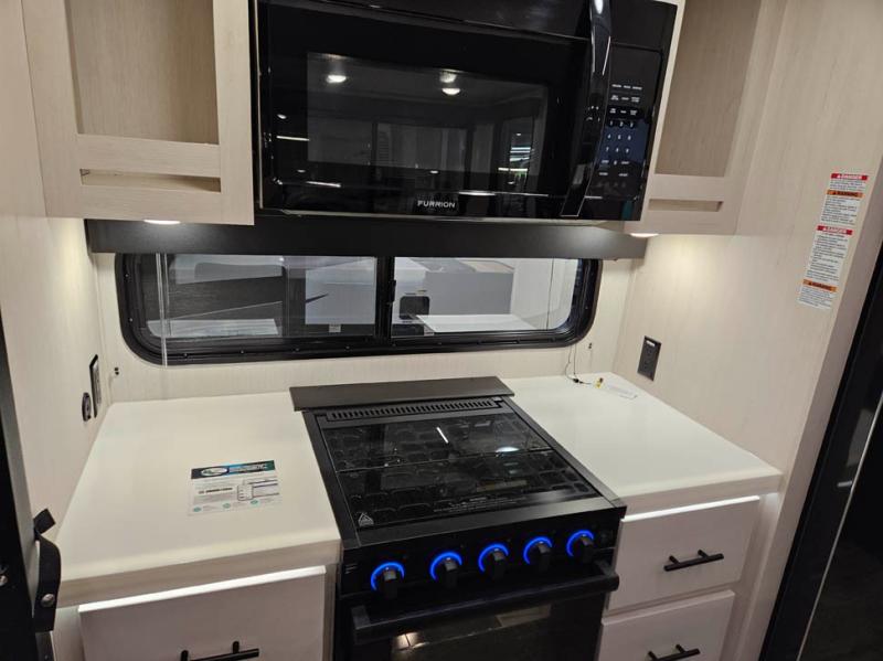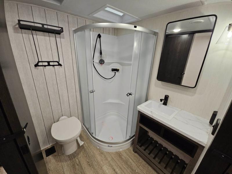 You will have amazing residential comfort in the Forest River Cherokee Arctic Wolf Suite fifth wheels! These units have a “SuperStor” dual-cavern basement storage compartment to allow you to bring more gear, and they have been constructed with a “ToughBend” rigid skirt metal design, a 1x engineered wood “SuperTruss” roof structure with 3/8" decking, and a 5/8” tongue-and-groove plywood floor decking. Each model includes Leash Latch pet safety technology, an outside shower with hot/cold water, preparations for an exterior TV, and motion-sensing lighting. The supersized central air conditioning unit (15,000 BTU) with quick cool and second oversized 15,000 BTU ducted A/C will cool your unit down in a snap when you camp in the hot summer months.
