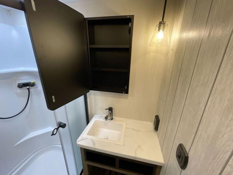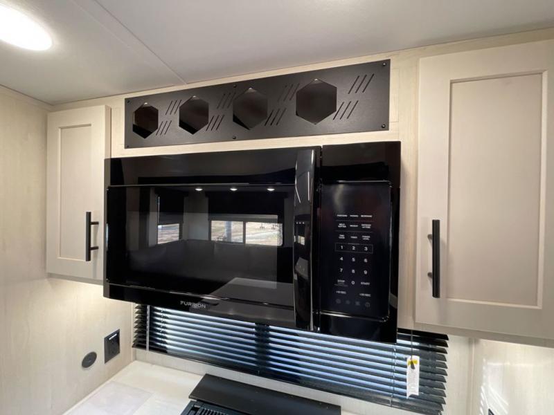 You will have amazing residential comfort in the Forest River Cherokee Arctic Wolf Suite fifth wheels! These units have a “SuperStor” dual-cavern basement storage compartment to allow you to bring more gear, and they have been constructed with a “ToughBend” rigid skirt metal design, a 1x engineered wood “SuperTruss” roof structure with 3/8" decking, and a 5/8” tongue-and-groove plywood floor decking. Each model includes Leash Latch pet safety technology, an outside shower with hot/cold water, preparations for an exterior TV, and motion-sensing lighting. The supersized central air conditioning unit (15,000 BTU) with quick cool and second oversized 15,000 BTU ducted A/C will cool your unit down in a snap when you camp in the hot summer months.