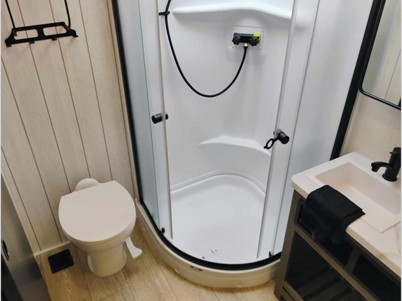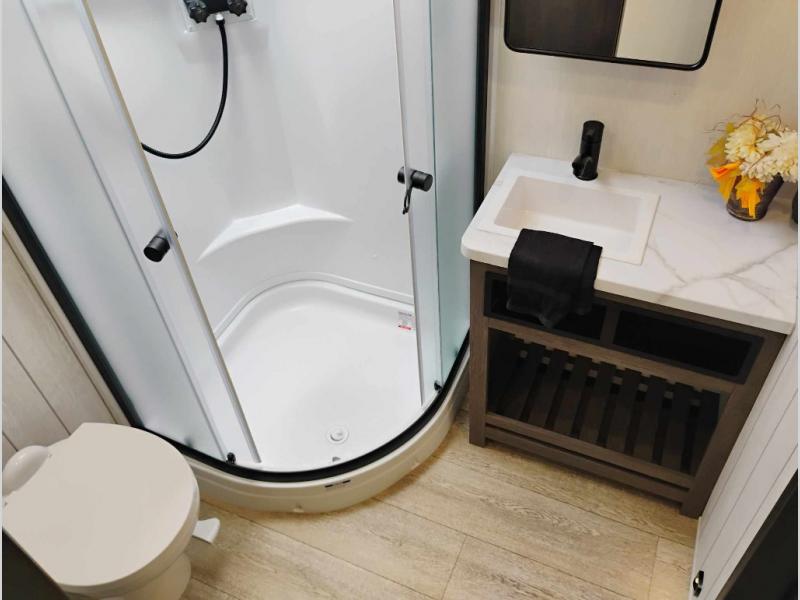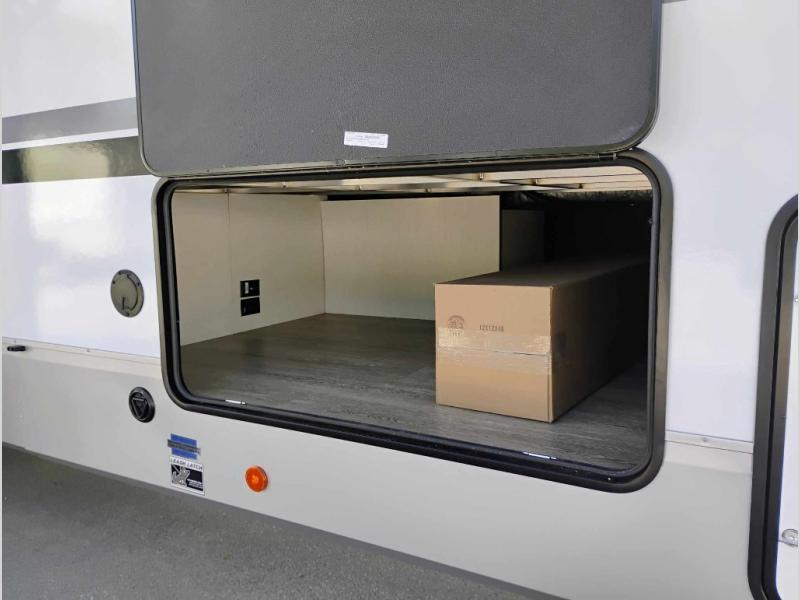 You will have amazing residential comfort in the Forest River Cherokee Arctic Wolf Suite fifth wheels! These units have a “SuperStor” dual-cavern basement storage compartment to allow you to bring more gear, and they have been constructed with a “ToughBend” rigid skirt metal design, a 1x engineered wood “SuperTruss” roof structure with 3/8" decking, and a 5/8” tongue-and-groove plywood floor decking. Each model includes Leash Latch pet safety technology, an outside shower with hot/cold water, preparations for an exterior TV, and motion-sensing lighting. The supersized central air conditioning unit (15,000 BTU) with quick cool and second oversized 15,000 BTU ducted A/C will cool your unit down in a snap when you camp in the hot summer months.