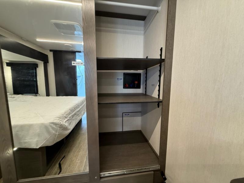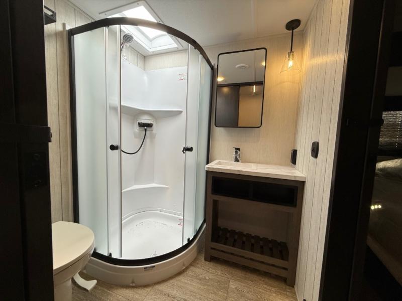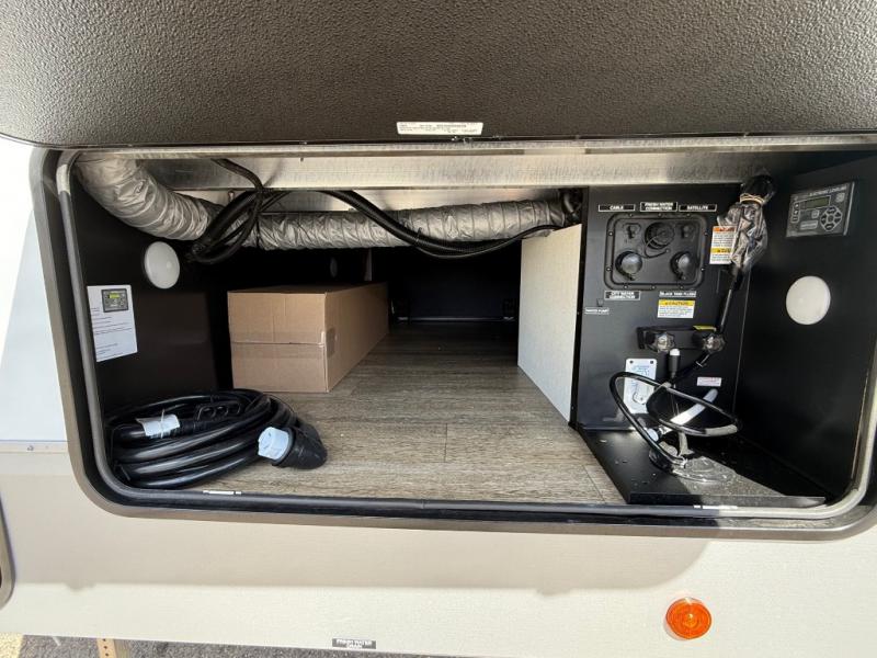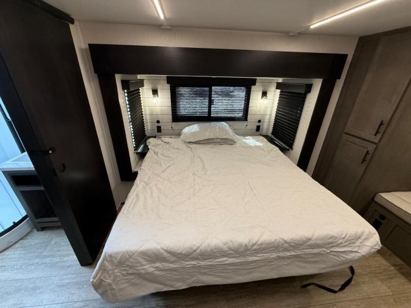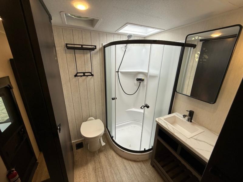 You will have amazing residential comfort in the Forest River Cherokee Arctic Wolf Suite fifth wheels! These units have a “SuperStor” dual-cavern basement storage compartment to allow you to bring more gear, and they have been constructed with a “ToughBend” rigid skirt metal design, a 1x engineered wood “SuperTruss” roof structure with 3/8" decking, and a 5/8” tongue-and-groove plywood floor decking. Each model includes Leash Latch pet safety technology, an outside shower with hot/cold water, preparations for an exterior TV, and motion-sensing lighting. The supersized central air conditioning unit (15,000 BTU) with quick cool and second oversized 15,000 BTU ducted A/C will cool your unit down in a snap when you camp in the hot summer months.