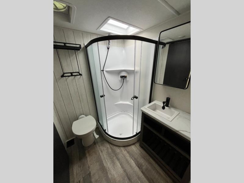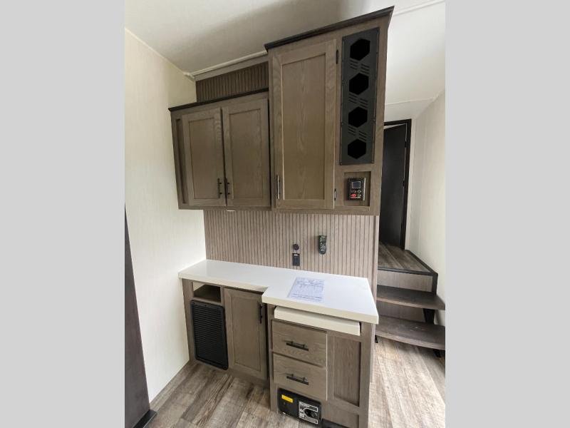 You will have amazing residential comfort in the Forest River Cherokee Arctic Wolf Suite fifth wheels! These units have a “SuperStor” basement storage compartment to allow you to bring more gear, and they have been constructed with a “ToughBend” rigid skirt metal design, a 1x engineered wood “SuperTruss” roof structure with 3/8" decking, and a 5/8” tongue-and-groove plywood floor decking. Each model includes Leash Latch pet safety technology, an outside shower with hot/cold water, preparations for an exterior TV, and motion-sensing lighting. The supersized central air conditioning unit (15,000 BTU) with quick cool and second oversized 15,000 BTU ducted A/C will cool your unit down in a snap when you camp in the hot summer months.