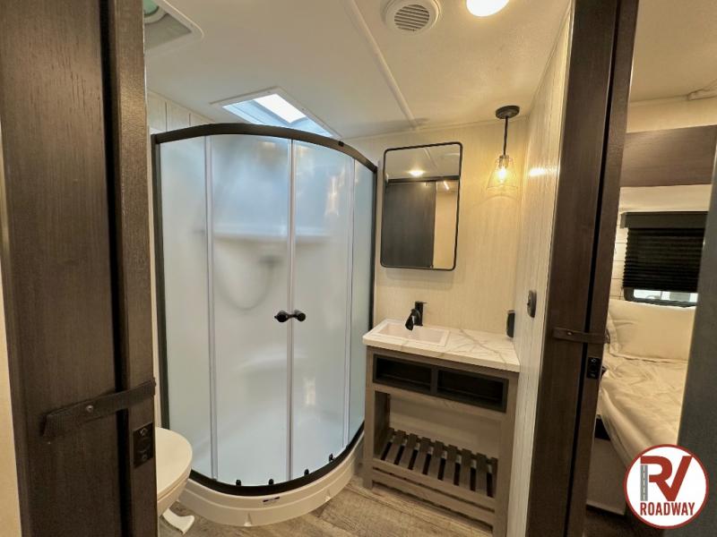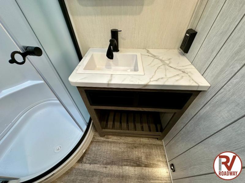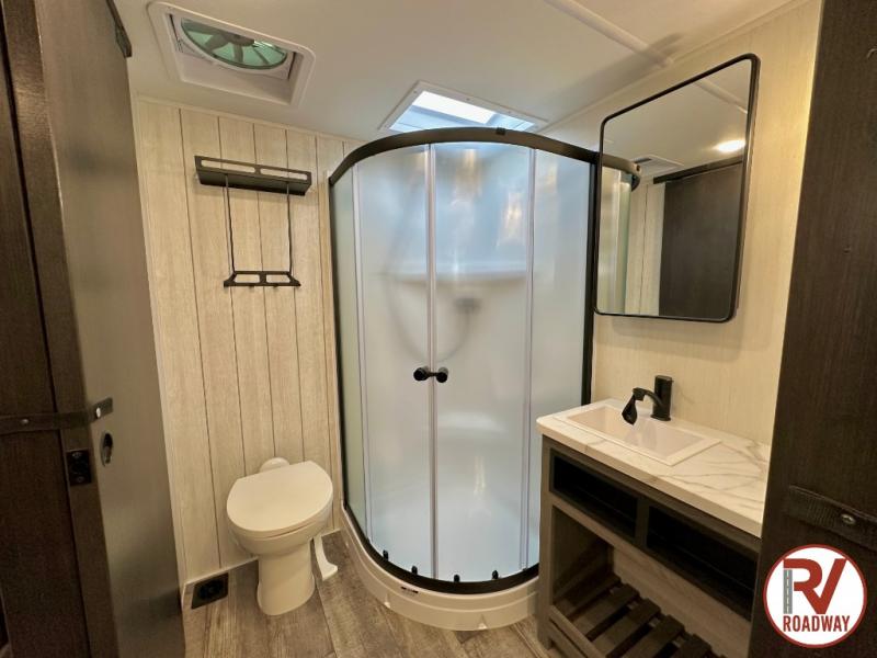 You will have amazing residential comfort in the Forest River Cherokee Arctic Wolf Suite fifth wheels! These units have a “SuperStor” basement storage compartment to allow you to bring more gear, and they have been constructed with a “ToughBend” rigid skirt metal design, a 1x engineered wood “SuperTruss” roof structure with 3/8" decking, and a 5/8” tongue-and-groove plywood floor decking. Each model includes Leash Latch pet safety technology, an outside shower with hot/cold water, preparations for an exterior TV, and motion-sensing lighting. The supersized central air conditioning unit (15,000 BTU) with quick cool and second oversized 15,000 BTU ducted A/C will cool your unit down in a snap when you camp in the hot summer months.