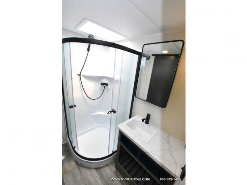 You will have amazing residential comfort in the Forest River Cherokee Arctic Wolf Suite fifth wheels! These units have a “SuperStor” basement storage compartment to allow you to bring more gear, and they have been constructed with a “ToughBend” rigid skirt metal design, a 1x engineered wood “SuperTruss” roof structure with 3/8" decking, and a 5/8” tongue-and-groove plywood floor decking. Each model includes Leash Latch pet safety technology, an outside shower with hot/cold water, preparations for an exterior TV, and motion-sensing lighting. The supersized central air conditioning unit (15,000 BTU) with quick cool and second oversized 15,000 BTU ducted A/C will cool your unit down in a snap when you camp in the hot summer months.