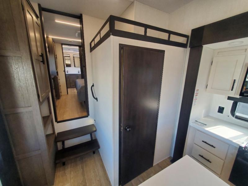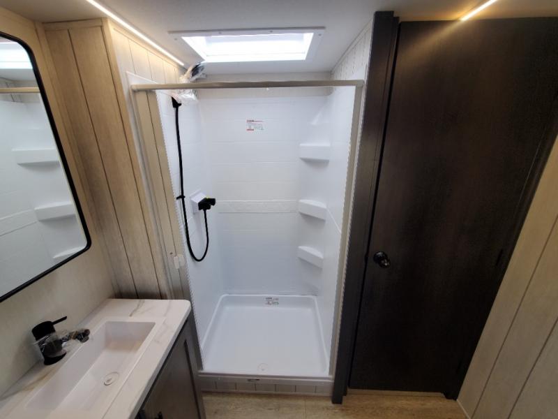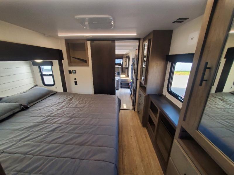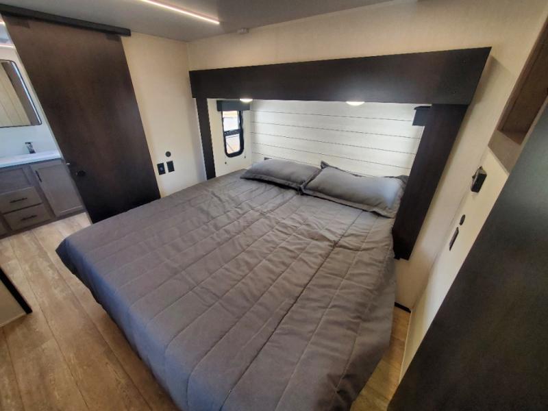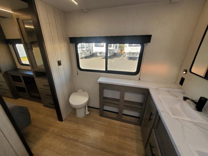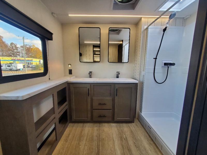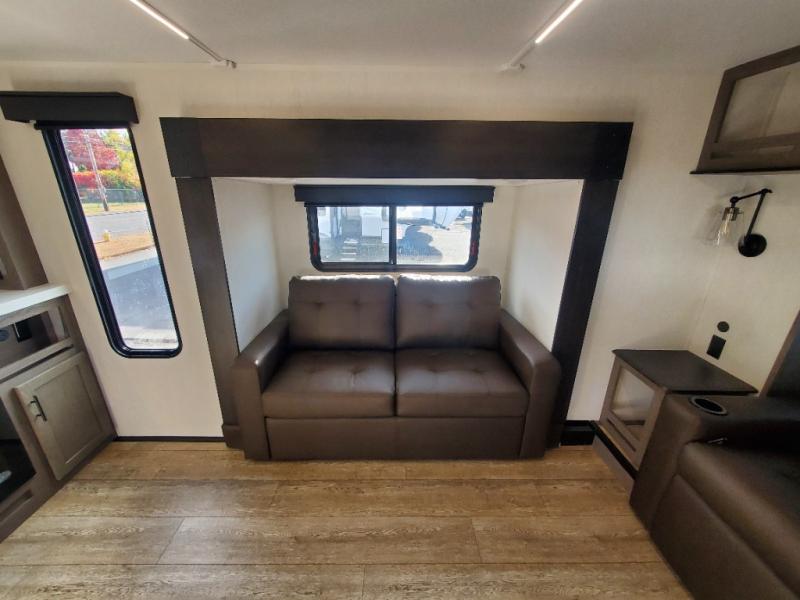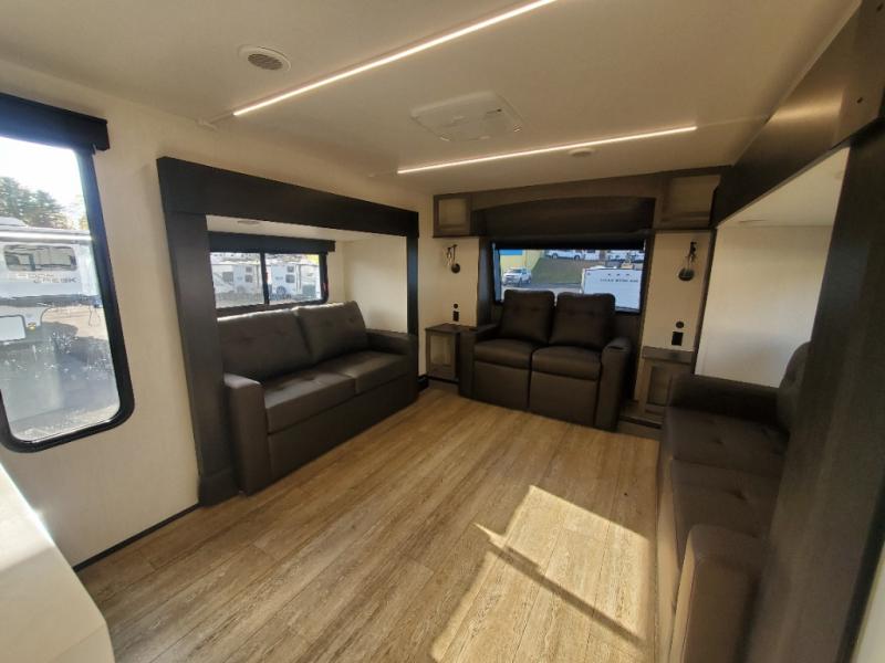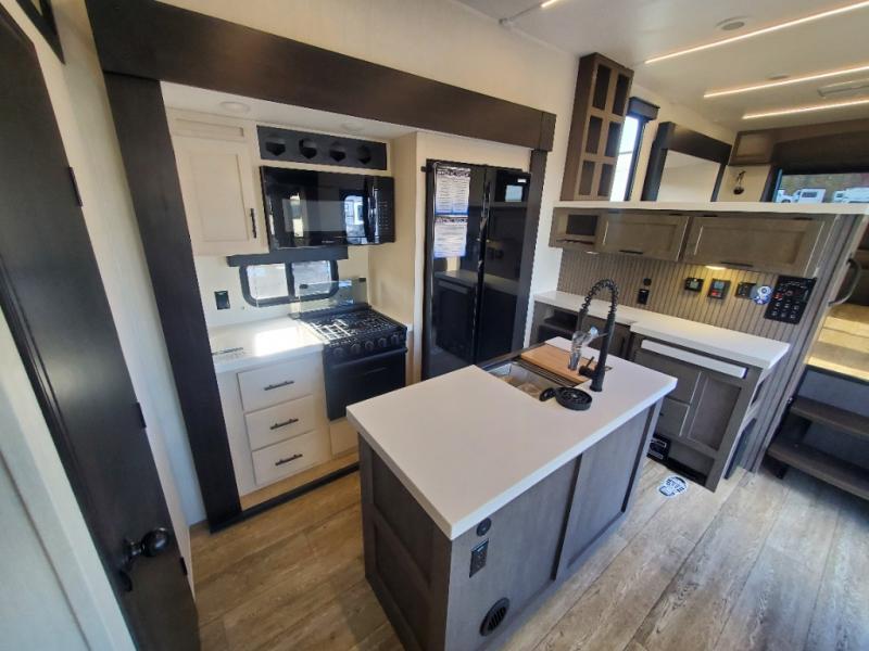 You will have amazing residential comfort in the Forest River Cherokee Arctic Wolf Suite fifth wheels! These units have a “SuperStor” dual-cavern basement storage compartment to allow you to bring more gear, and they have been constructed with a “ToughBend” rigid skirt metal design, a 1x engineered wood “SuperTruss” roof structure with 3/8" decking, and a 5/8” tongue-and-groove plywood floor decking. Each model includes Leash Latch pet safety technology, an outside shower with hot/cold water, preparations for an exterior TV, motion-sensing lighting, and a smart monitor panel with smart phone Bluetooth connectivity. The supersized central air conditioning unit (15,000 BTU) with quick cool and second oversized 15,000 BTU ducted air conditioner will cool your unit down in a snap when you camp in the hot summer months.