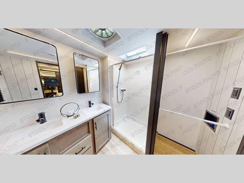 You will have amazing residential comfort in the Forest River Cherokee Arctic Wolf Suite fifth wheels! These units have a “SuperStor” dual-cavern basement storage compartment to allow you to bring more gear, and they have been constructed with a “ToughBend” rigid skirt metal design, a 1x engineered wood “SuperTruss” roof structure with 3/8" decking, and a 5/8” tongue-and-groove plywood floor decking. Each model includes Leash Latch pet safety technology, an outside shower with hot/cold water, preparations for an exterior TV, and motion-sensing lighting. The supersized central air conditioning unit (15,000 BTU) with quick cool and second oversized 15,000 BTU ducted A/C will cool your unit down in a snap when you camp in the hot summer months.