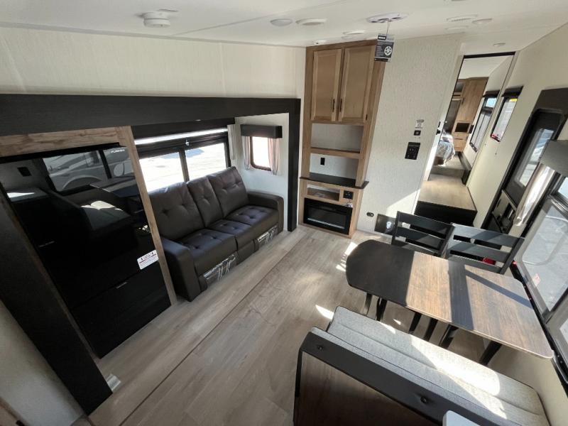 Step into the spacious interior of the Forest River RV CHEROKEE, where every detail caters to your comfort and convenience. The layout maximizes space and functionality, offering a perfect setting for relaxation and entertainment.
