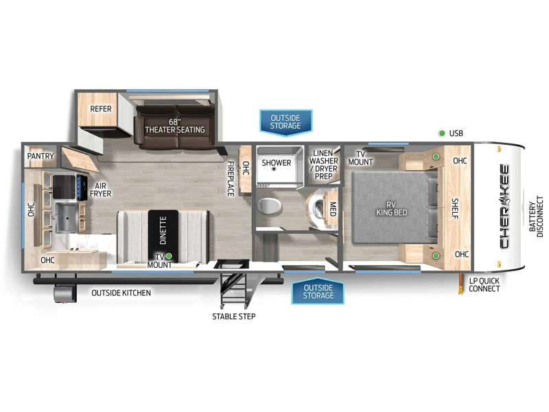 In the Forest River RV CHEROKEE, comfort is king. The plush seating, cozy sleeping spaces, and versatile living areas are all designed to make your journeys as relaxing as they are memorable.