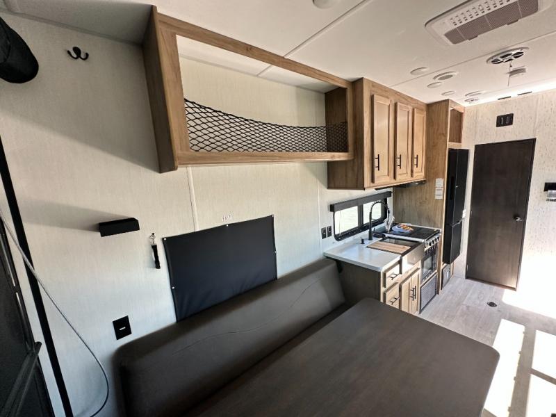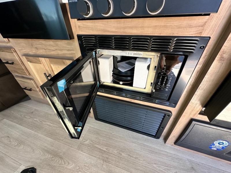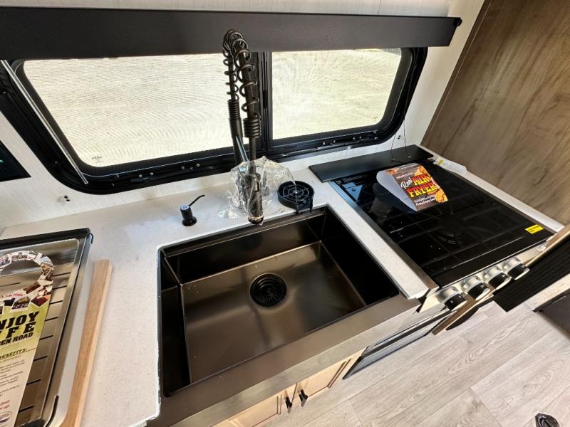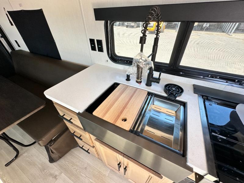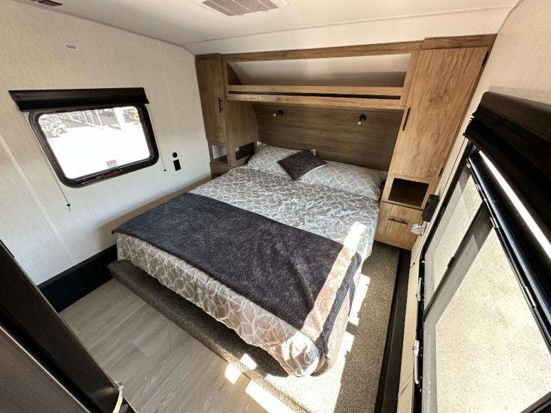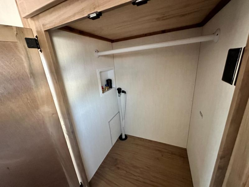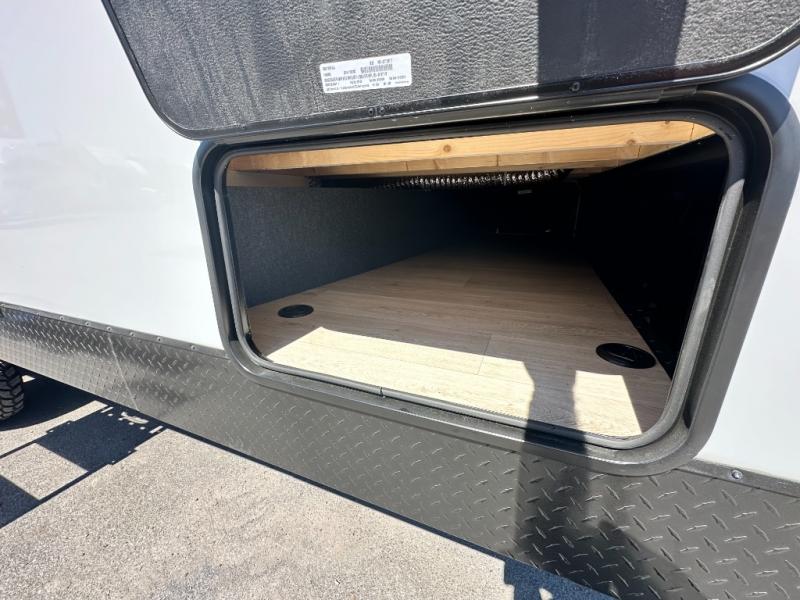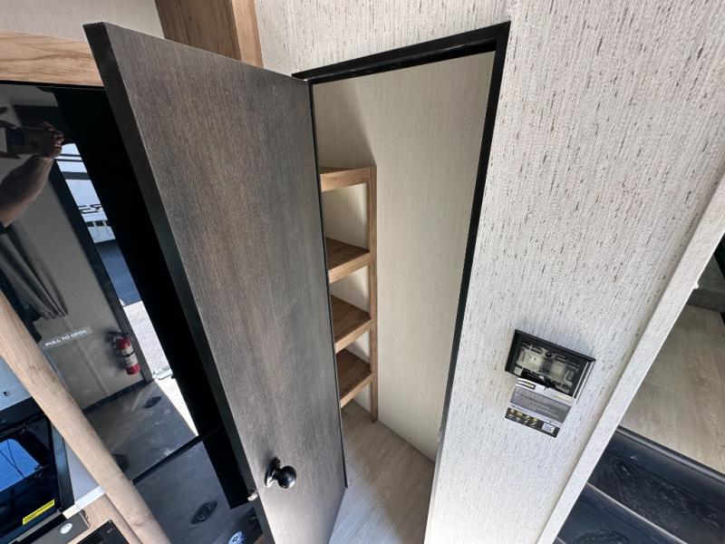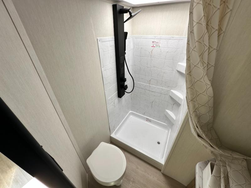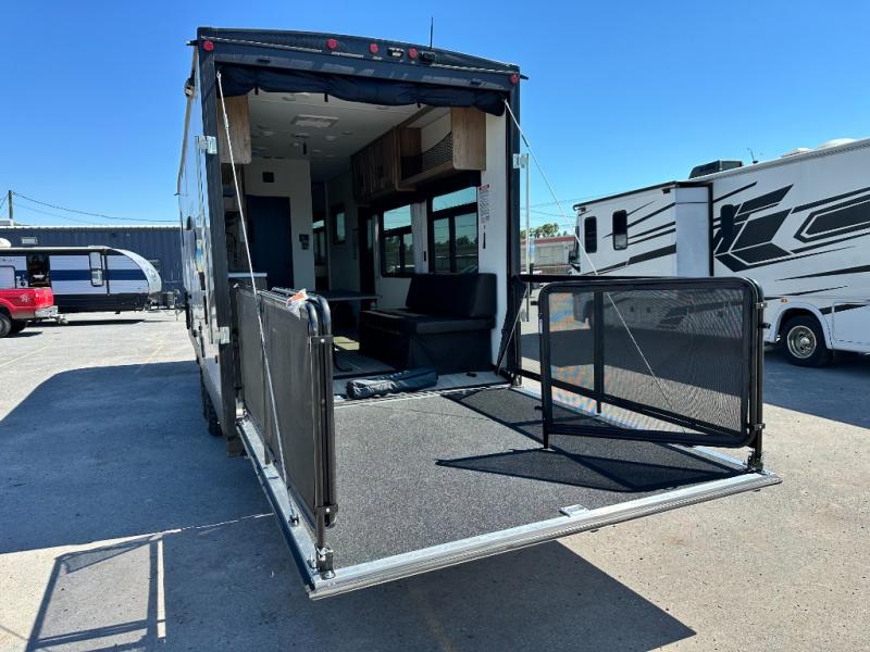 Load up your Harley's and invite your riding buddies for weekend bike shows in this toy hauler. There is a 6' 10" garage with 14' 6" total garage space, a ramp door to easily unload, and two fold down sofas with a dinette where you can dine, relax, and sleep guests. The kitchen includes a cooktop, an oven with a light, and a microwave oven to cook meals, and check out the walk-in pantry for dry goods and snacks! This model features a spacious full bath with a shower with a seat, a queen bed in the bedroom, and even a linen closet with an optional washer and dryer!
