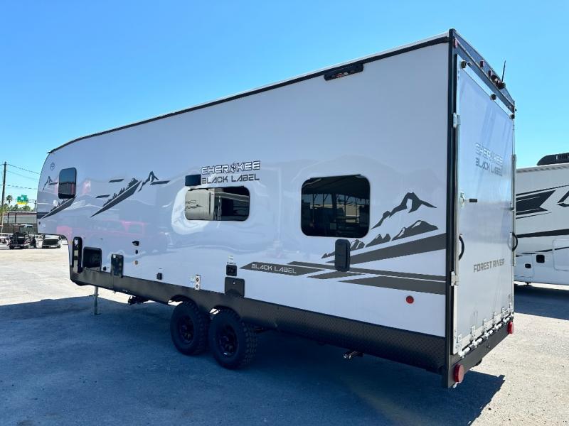 With all Cherokee Black Label travel trailer, fifth wheel, and toy hauler models there is Power Gear frame technology and a space saver rail design, a seamless roofing membrane with heat reflectivity, and a supersized central air conditioning unit with a quick cool air dump feature, plus an armored underbelly tank enclosure. With the added Black Label features, you will enjoy upgraded solid surface countertops, designer cushion fabric, a frameless window package, hung fiberglass sidewalls, Thermo-Foil Arctic insulation to keep the temperature comfortable in all types of weather, plus more.