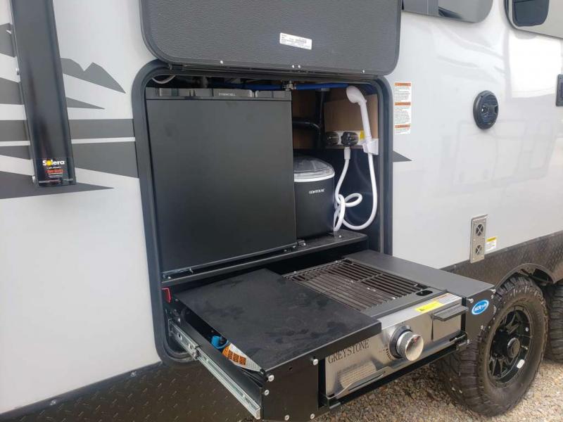 All Cherokee Black Label travel trailer, fifth wheel, and toy hauler models feature Power Gear frame technology and a space saver rail design, a seamless roofing membrane with heat reflectivity, and a supersized central air conditioning unit with a quick cool air dump feature, plus an armored underbelly tank enclosure. With the added Black Label features, you will enjoy upgraded solid surface countertops, designer cushion fabric, a frameless window package, hung fiberglass sidewalls, Thermo-Foil Arctic insulation to keep the temperature comfortable in all types of weather, plus more.