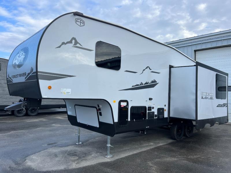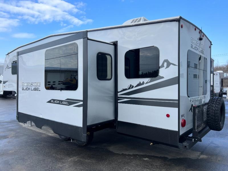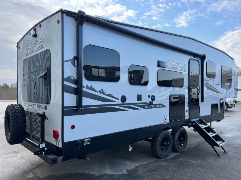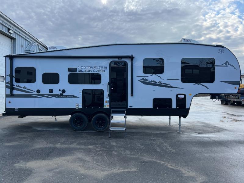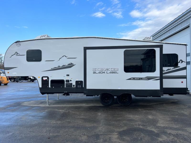 Take your adventures up a notch with the Cherokee Black Label by Forest River. There are a variety of models to choose from, including travel trailers, fifth wheels, destination trailers, and even a fifth wheel toy hauler to fit your needs best. You'll love the sleek hung fiberglass gel coat sided walls, along with the frameless window package and Thermo-Foil arctic insulation to help extend your camping season. Head inside to find upgraded solid surface countertops, upgraded reading lights, designer cushion fabric, and many more comforts.