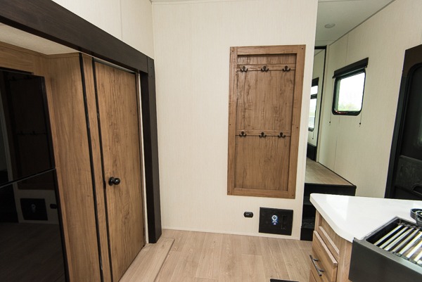 Camping trips are made complete in this fifth wheel! There is a large slide in the combined living area and kitchen, and here you'll find theater seating plus a pantry and a refrigerator for food storage. The rear U-shaped dinette provides more seating space, as well as dining and sleeping space for any guests you may have. The chef of your group will have all the appliances needed to cook meals, including an air fryer, although they may just find themselves cooking outdoors on the outside kitchen. A full bath will let you freshen up after a day at the lake, and the RV king bed is sure to provide a great night's rest. There are also dual wardrobes to keep your space tidy, along with a linen closet with a washer/dryer option!