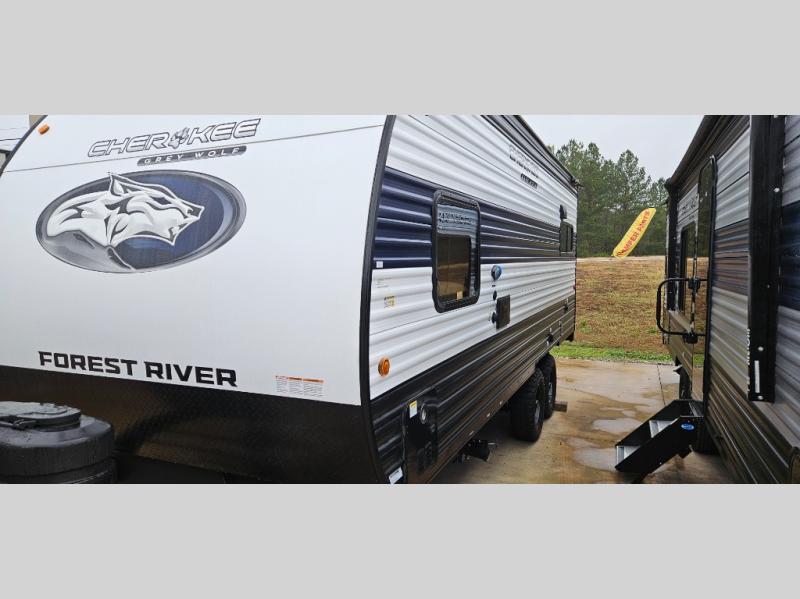 Whether it's a journey that will take you to new locations or a tried-and-true getaway to that favorite and memorable destination, the Forest River Cherokee Grey Wolf travel trailers and toy haulers are going to make the trip worth it every single time! You can travel in confidence with the premium wheel package, seamless roofing membrane with heat reflectivity, Power Gear frame technology with space-saver rail design, and Cherokee back-up camera system. The Cherokee Grey Wolf's interior is highly attractive with its stainless steel kitchen suite package and premium bedding ensemble and comforter. You will also find a black waste tank flush-out kit, an outside shower with hot and cold water, an armored underbelly tank enclosure, and an RV grill quick connect.